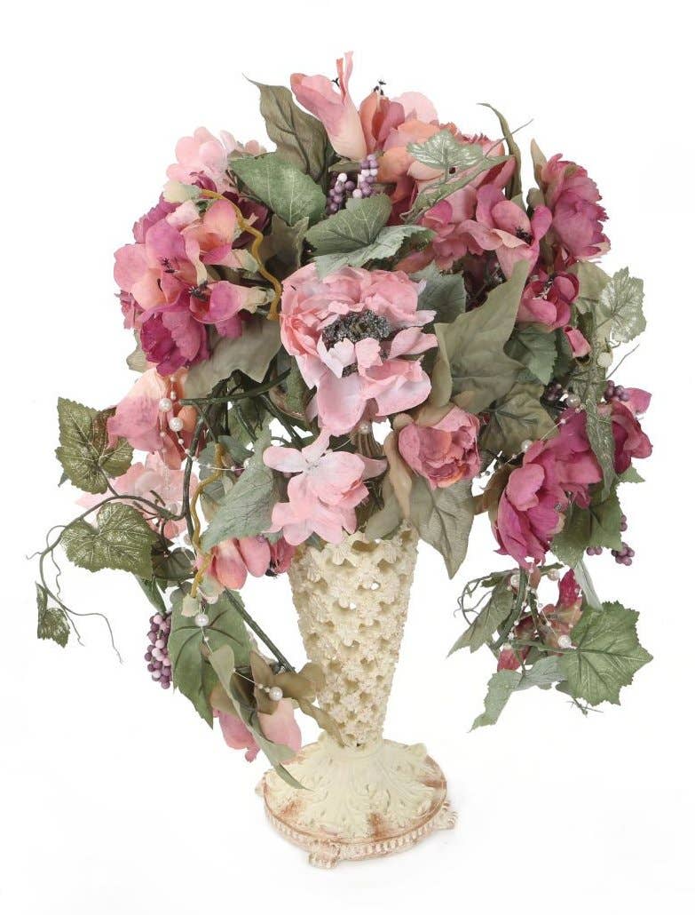 The double-bloom hydrangea is a breathtaking beauty boasting two large, full-bodied, and matured hydrangea blooms. Its stunning tones of green highlighted with burgundy red kissed petals, and a touch of pale blue are reminisce of the picturesque colors found in a beautiful summer garden. With meticulous attention to detail, this faux hydrangea embodies the essence of a real flower, and radiates an air of natural elegance and charm. Whether used as a standalone arrangement or incorporated into a larger floral display, its beauty captivates hearts and adds a touch of summer's splendor to any space. Allow this stunning artificial hydrangea grace your decor with everlasting charm and create a timeless display that never fades away.