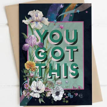 For the fighter in them… give a little encouragement and laughs all in one all while letting them know you are thinking of them. Take a closer look: this is our Make Cancer Your Bitch Encouragement card, made on 110# white card stock. With gold to pink ombré foil detail. This card comes with a custom-coordinated envelope as well.