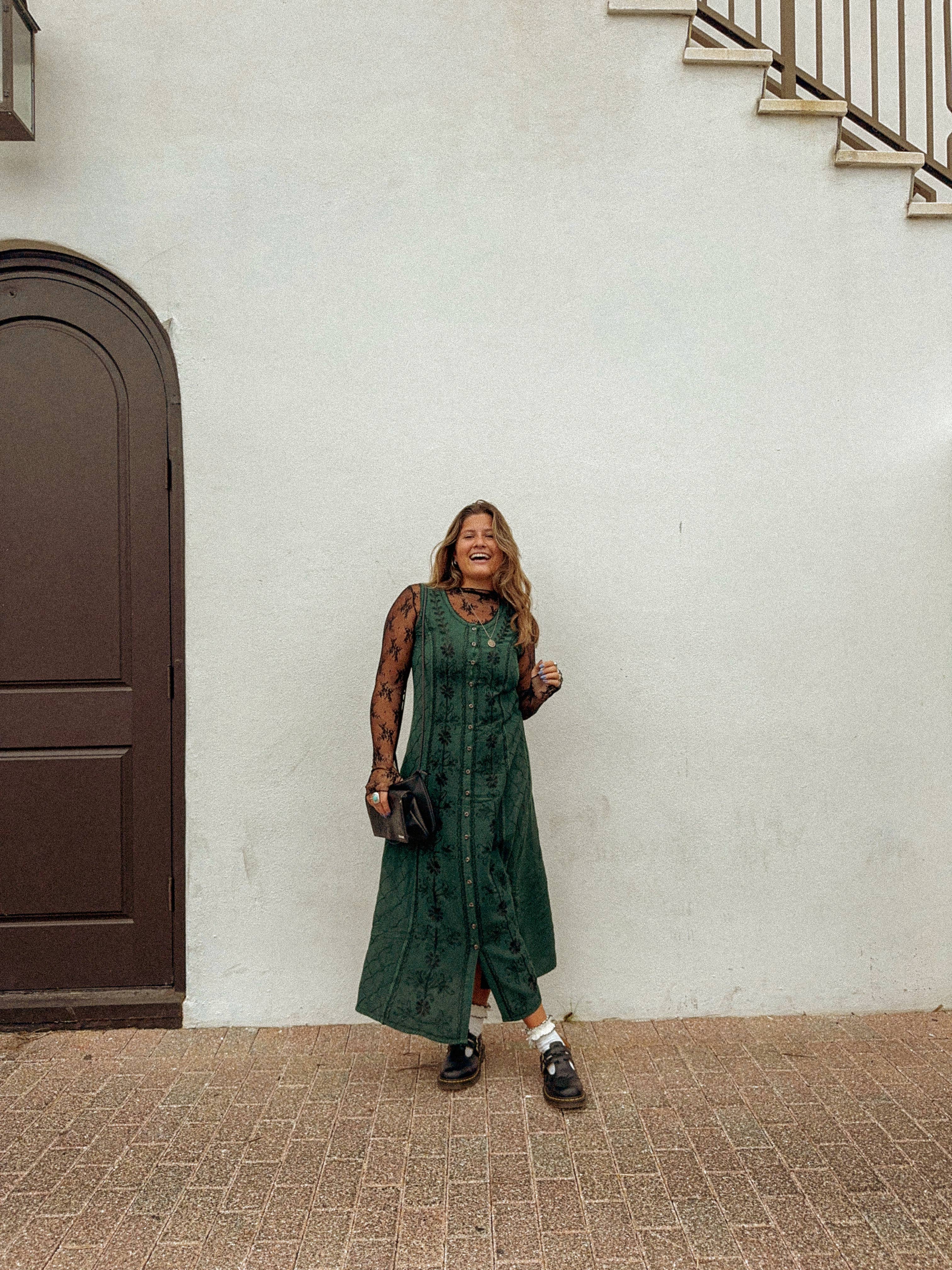 Boho Hippie Maxi Dress, Earthy Solstice Bell Sleeve Dress