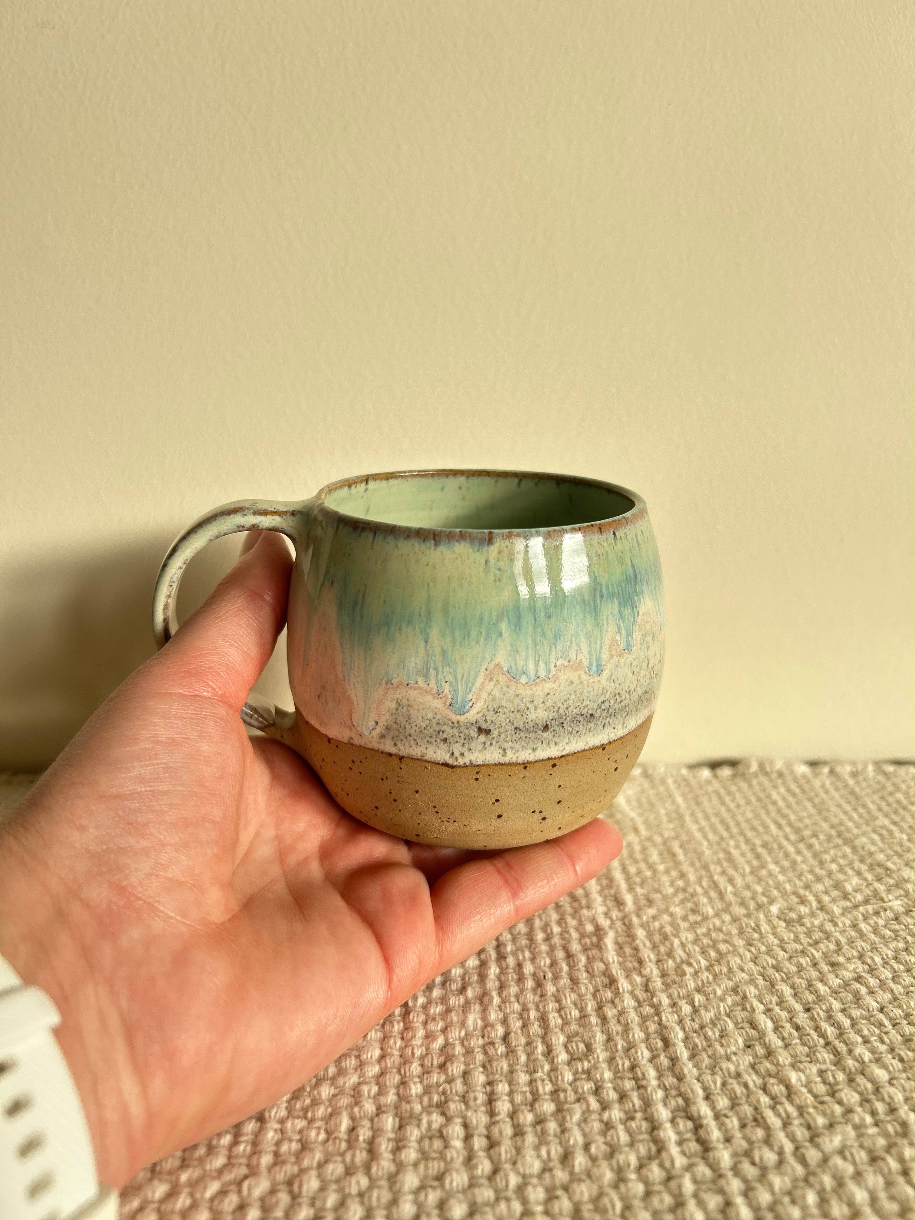 Handmade Ceramic Espresso Cup designed by Fernweh Clay Designs About this cup : Perfect for your espresso in the morning! Produced with food safe clay& glaze. Dimensions - 8.2cm diameter , 7.5cm height Capacity - 200ml This pottery cup is totally handmade and goes through many processes and firings to get to the final product. These pieces are completely unique and organic in shape, since they are produced by hand there may be slight imperfections in the piece.