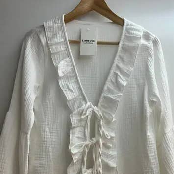 Made in Italy Aesthetic: Bohemian Care instructions: Hand wash Embellishment: Broderie Fabric: 100% cotton Fit: Contemporary Neckline: V-neck Occasion: Everyday and Resort/holiday Pattern: Solid Season: Spring/Summer Sleeve length: Long-sleeve Product language: French and Italian Weight: 240 g (8.47 oz)