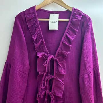 Solid blouse Cotton gauze Long sleeves One size Made in Italy