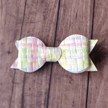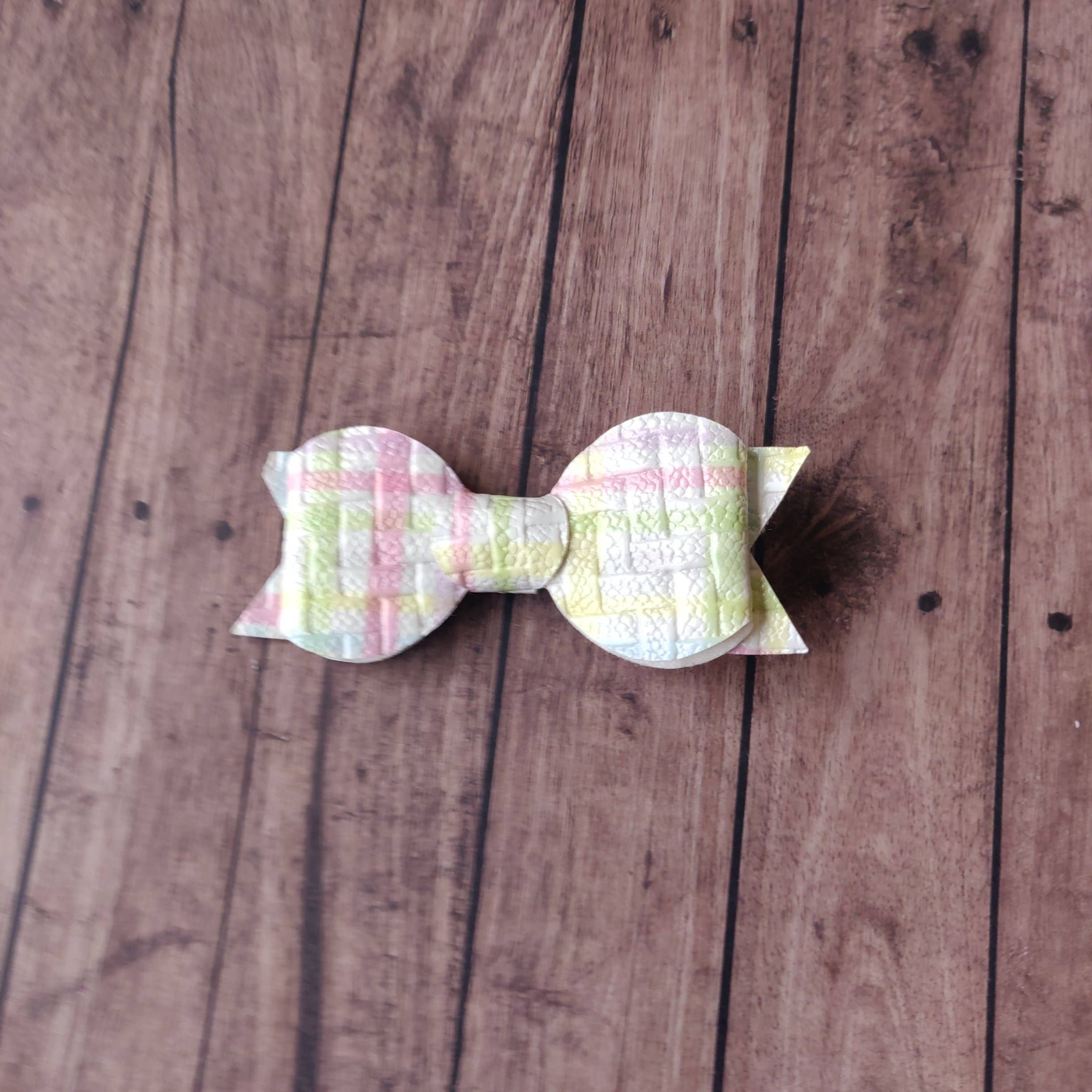 4.5 inch Grosgrain Bow Featuring a sparkling glitter embroidered belt buckle Appliqué. Available on 2 style of hair clip.