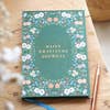 A dark green fabric journal embellished with delicate floral designs With inspiring affirmations and elegant gold-lined pages Comes with a blue silk page marker for easy organisation Makes a great addition to a year round stationary collection Dimensions: length 21cm x width x 14.5 x depth x 1.7cm Made from: paper, fabric