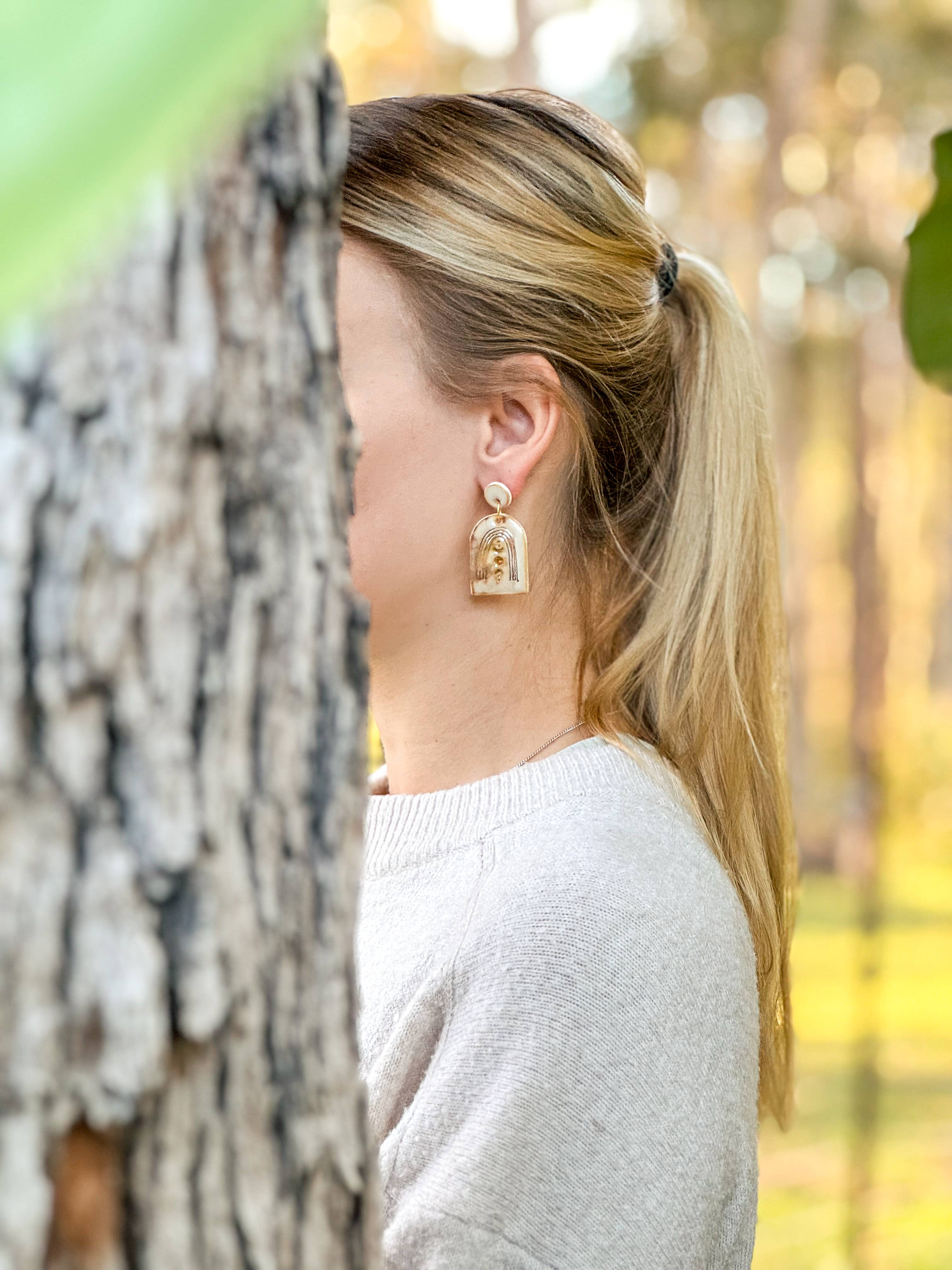 All the earrings are designed and handcrafted by me in my studio in the Hinterland of Agnes Water in Australia. Each piece is fired multiple times in a kiln, with temperatures up to 1250 Celsius degree. This gives the jewellery a stone like appearance as well as qualities (doesn’t absorb water, has a stone feel to it and absorb body temperature) and therefore they are sustainable. The Earrings have stainless steel stud posts and come on a white display card ( with Wolf and Clay logo ). if you have any questions, please feel free to contact me wolfandclay@gmail.com