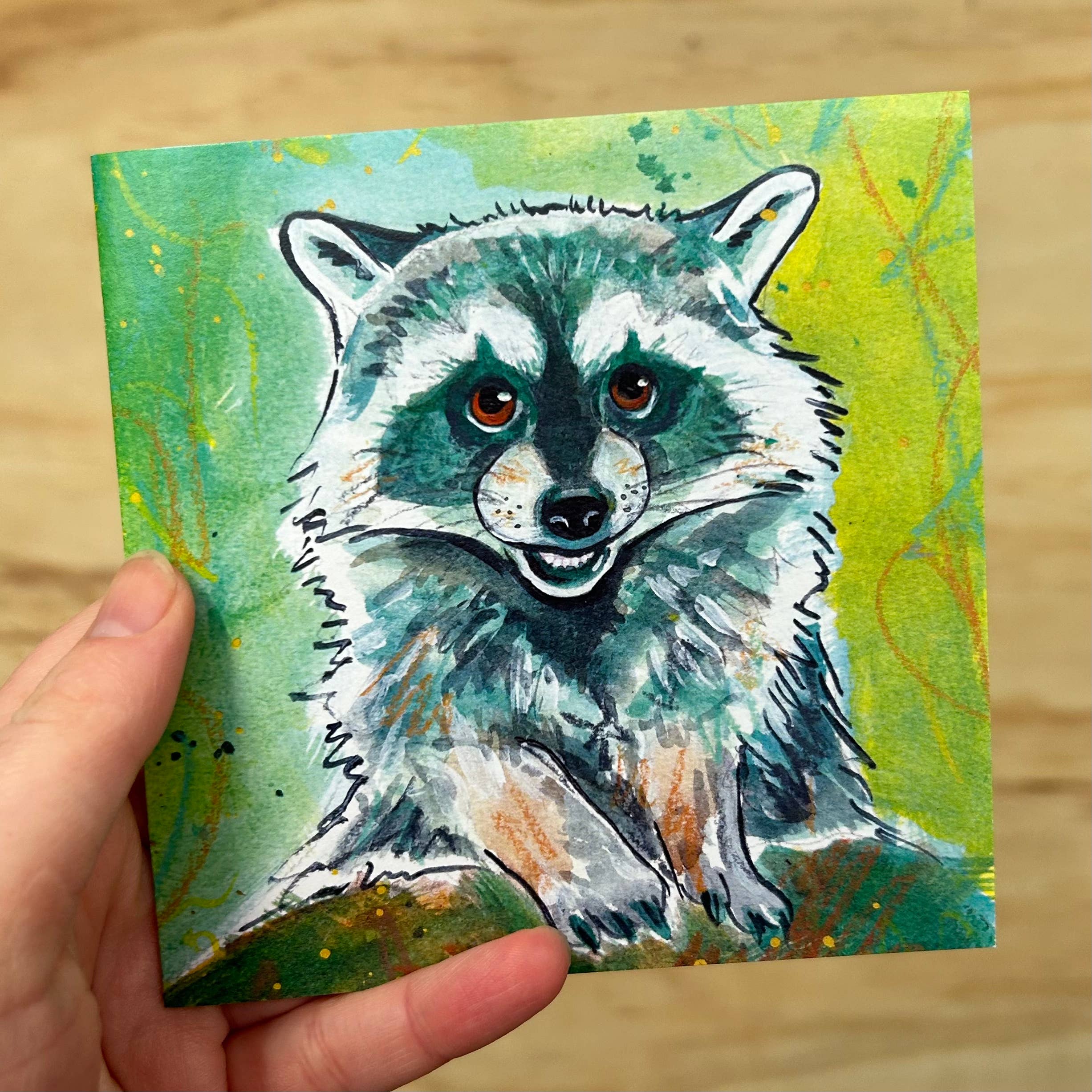 This card is based on my original lino print, and features an otter swimming in the reeds. Cards are 12cm square and are digitally printed onto lovely card stock from a sustainable source. I am currently in the process of moving over to a thicker smooth recycled cardstock, so you will either receive this/ my previous textured cardstock/ or a mixture of both. All of my greetings cards are blank inside for your own message, and come with a brown Kraft envelope. They will be sent naked (without a cello sleeve!)