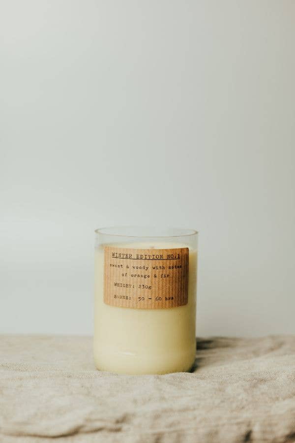 Add a touch of tranquility to any room with our eco-friendly tea light holders. Crafted from repurposed glass and set on reclaimed wooden bases, these holders stand 14cm tall and are designed to protect the candle's flame while enhancing your space. Each one is unique, and comes with a dark wood base, they perfectly accommodate standard tea lights or our eco-conscious reusable options. Ideal for romantic dinners or cozy evenings, these holders combine sustainability with elegant design. If you have a preference on the shade of wood please let us know in the notes. Also available in clear and forest green glass. Glass tea light cups are available to buy separately.