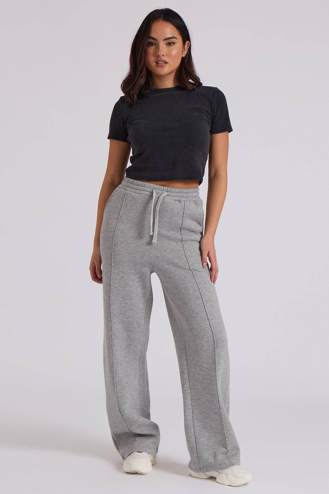 High Waisted Wide Waistband Joggers Model Is (5'8") And Wearing A (small) Bottom- Total Length: 37", Waist: 13", Inseam: 26.5" All Sizing Is Measured From Small 80% Polyamide 20% Elastane Imported