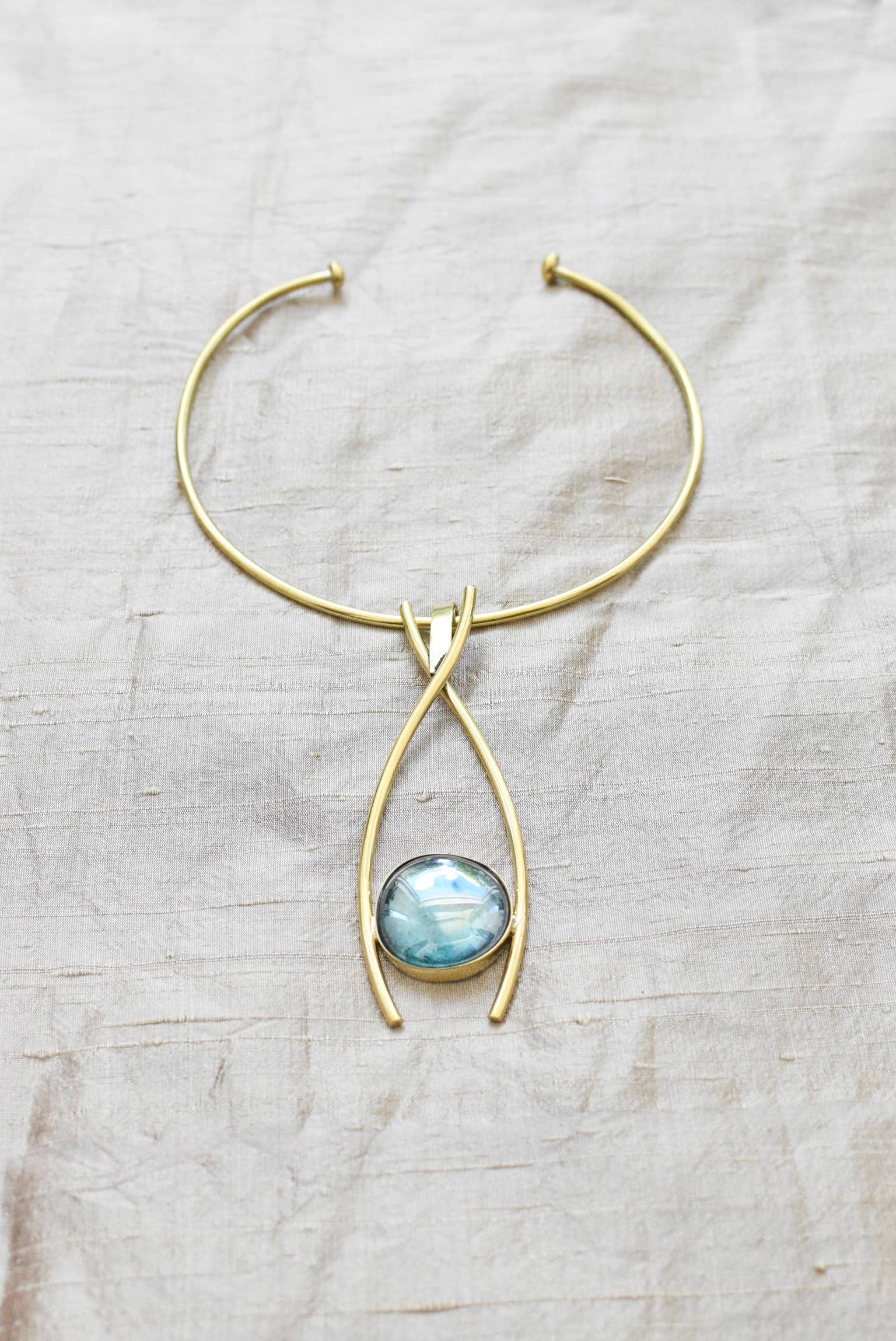 Snake Moss Choker Blue Crystal Magnetic Closure 40 cm.