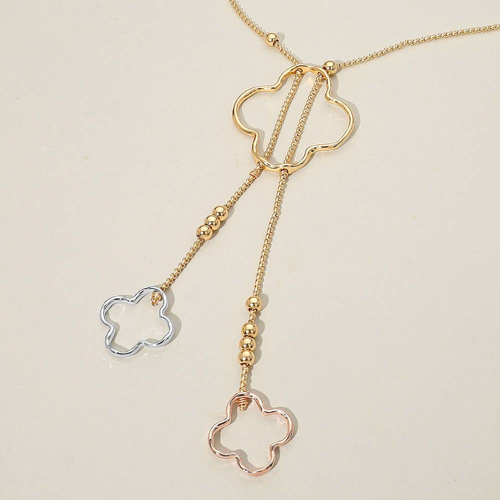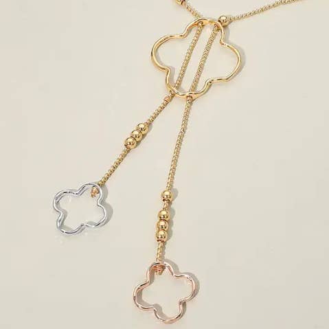14K Gold Plated CZ Stone Paved Quatrefoil Charm Bracelet