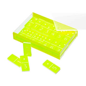 Each set of dominoes includes 28 matched vintage, reclaimed double-six dominoes. Since all sets are found secondhand each box includes a brief handwritten description of the unique qualities of each set. Each box can vary in material, style, age, and color of the matched domino set. The box also includes a risograph printed booklet containing game rules. Product dimensions - 9" x 2" x 2"