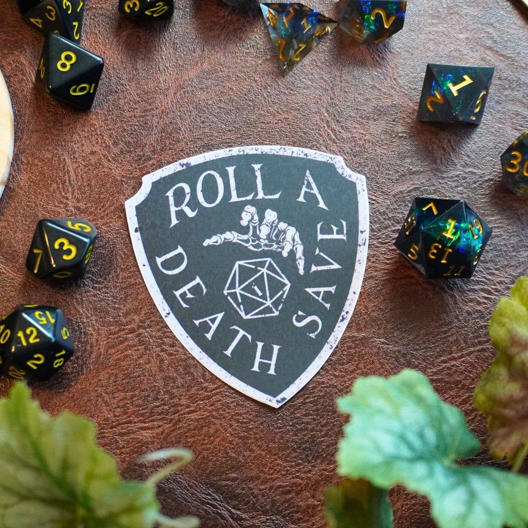 Get our Dungeon Sticker Pack with 5 our best-selling stickers in one great value! Each sticker is printed on waterproof sticker paper and overlayed with a weatherproof laminate for extra protection so they're great on a laptop or even a bumper sticker on your car. * Crying is a Free Action Sticker: 2.5Wx1L in * Warning! This is a Mimic Sticker: 3Wx1.7L in * D20 Red Shield Sticker: 3Wx3L in Sticker * D20 Green Sticker: 2.625W x 2.25L * Dungeon Delver Glitter Sticker: 3Wx1.97L inches Will be shipped via USPS © Copyright. All designs are meant for personal use only