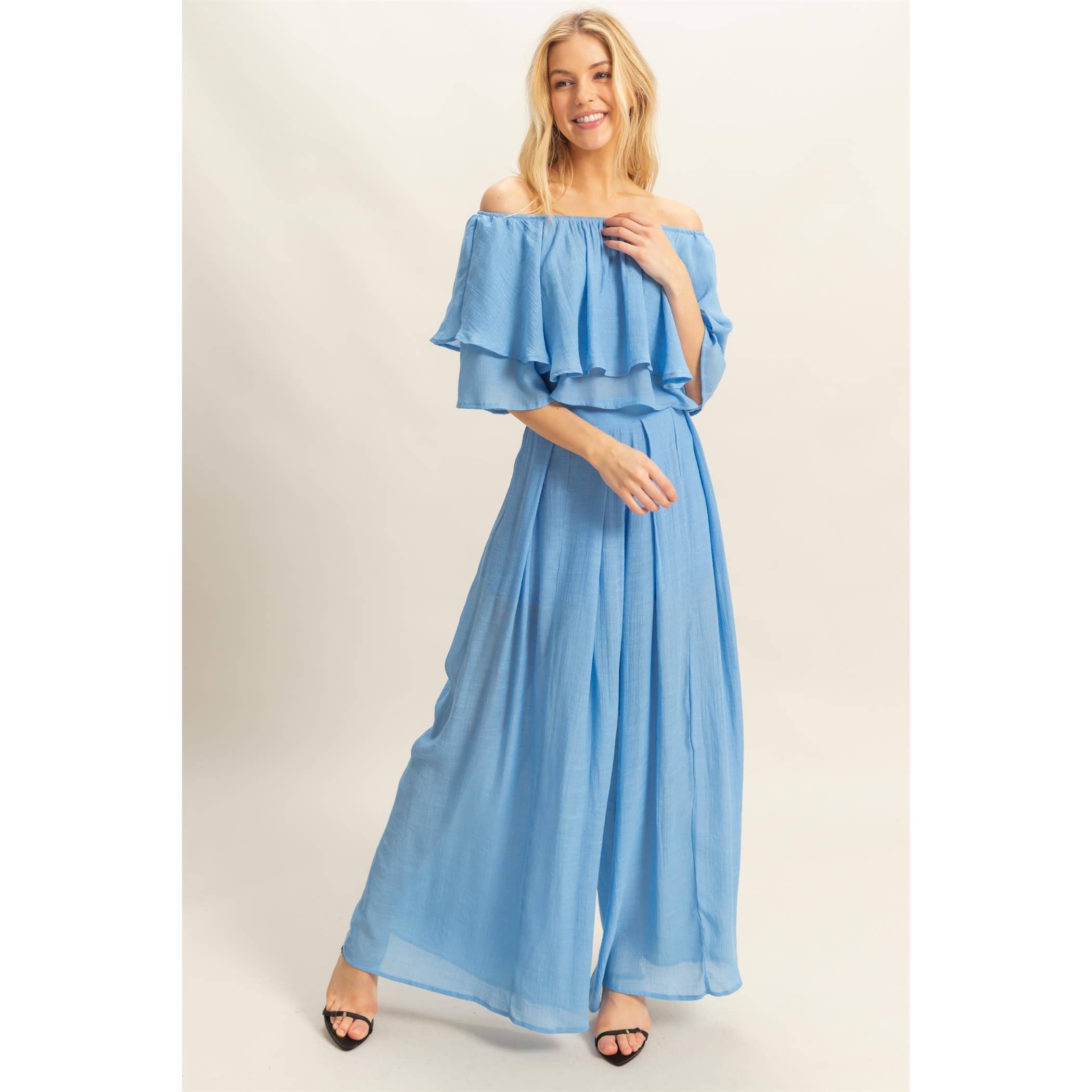 HF25E047-SET-Off-The-Shoulder Blouse And Pants Set