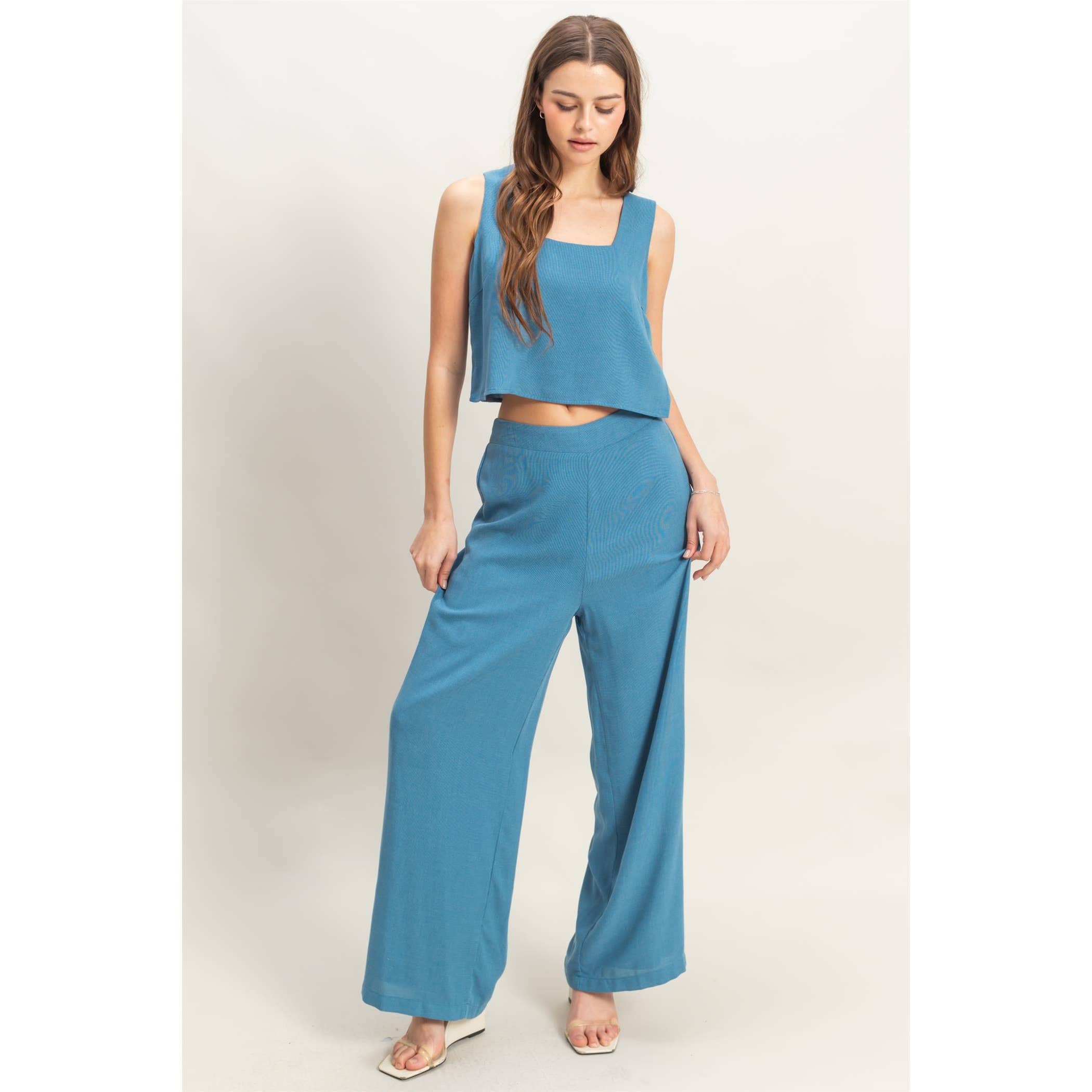 HF25C716-SET-Longline Sleeveless Top And Pants Set