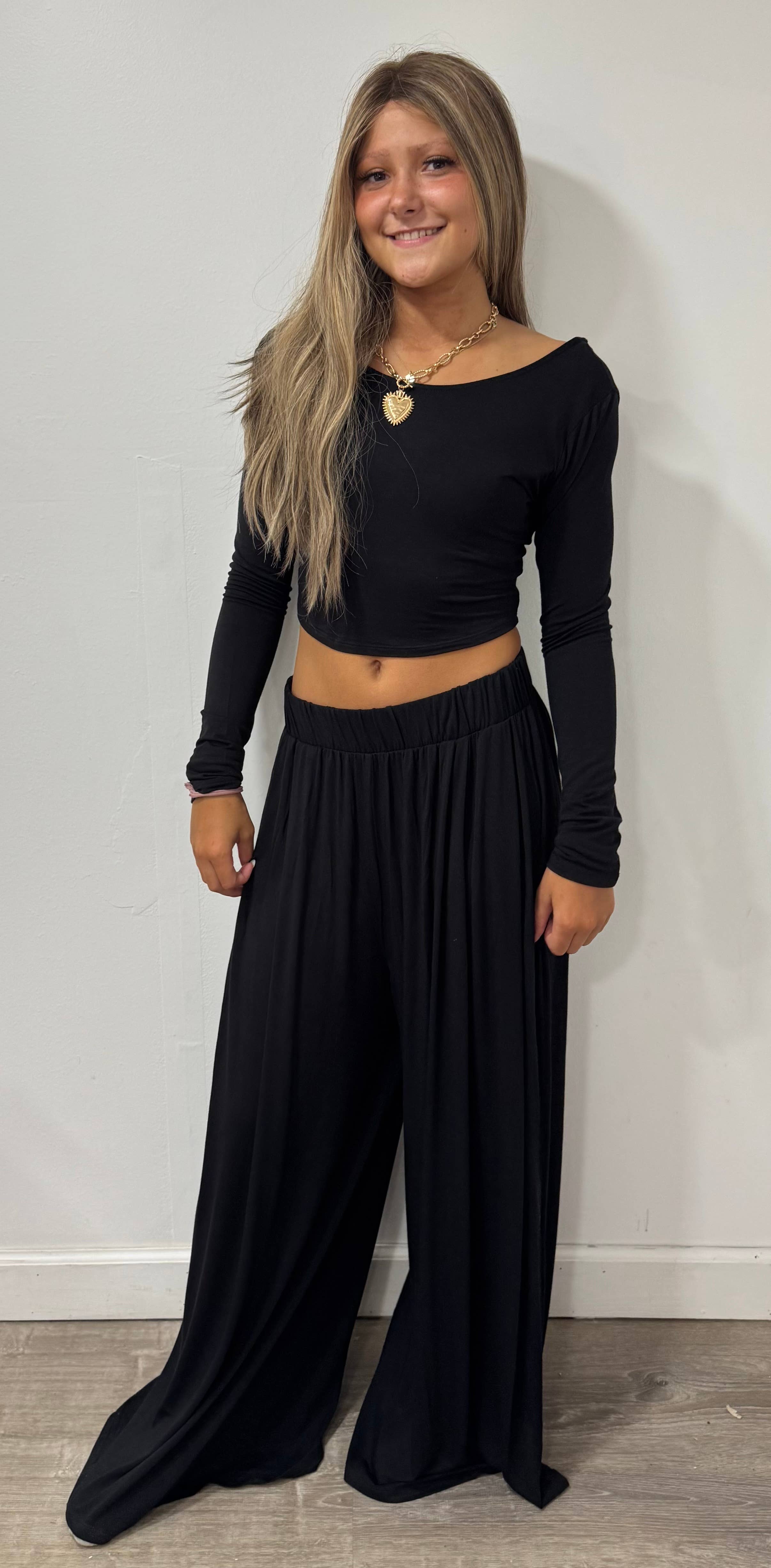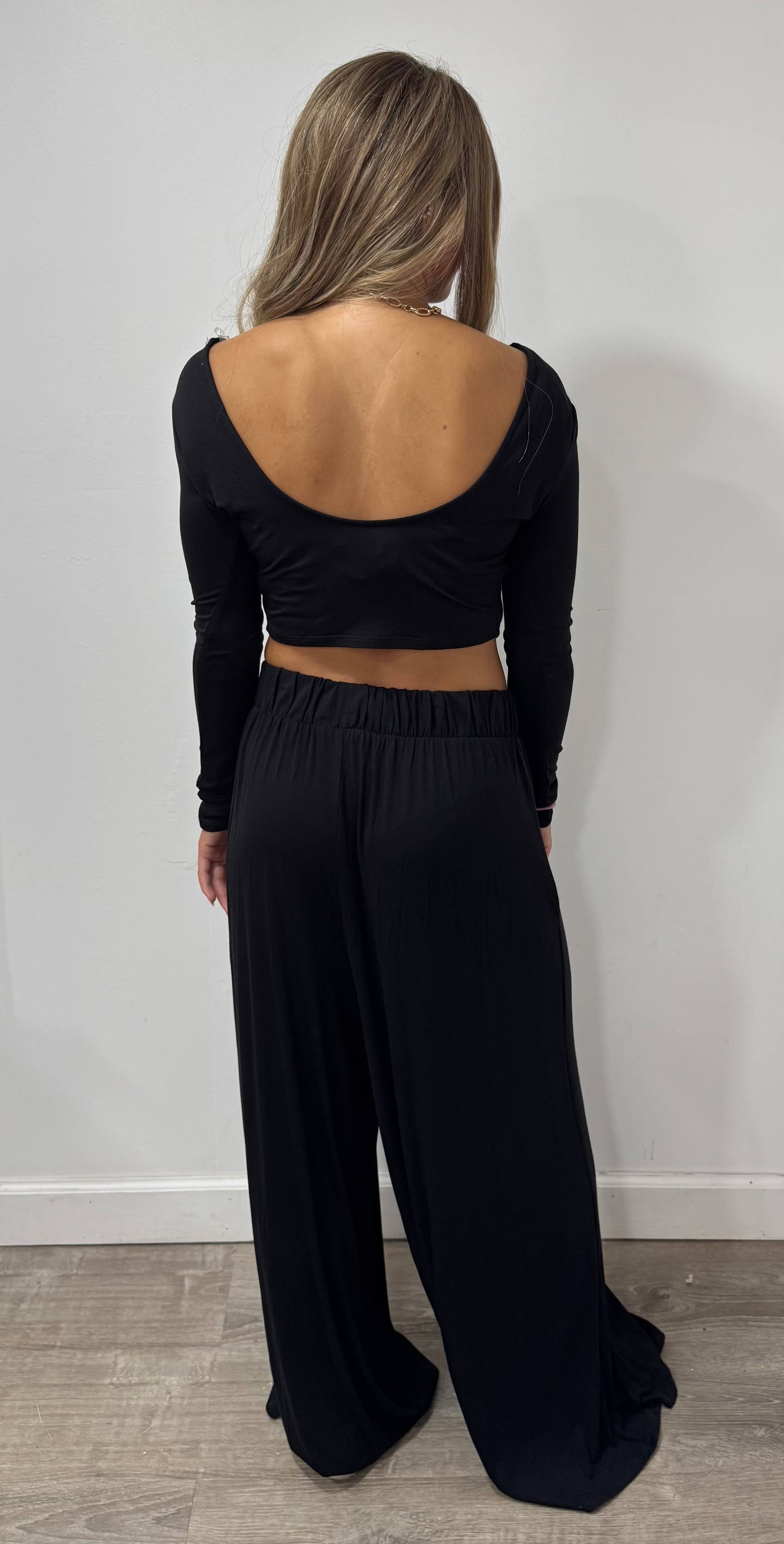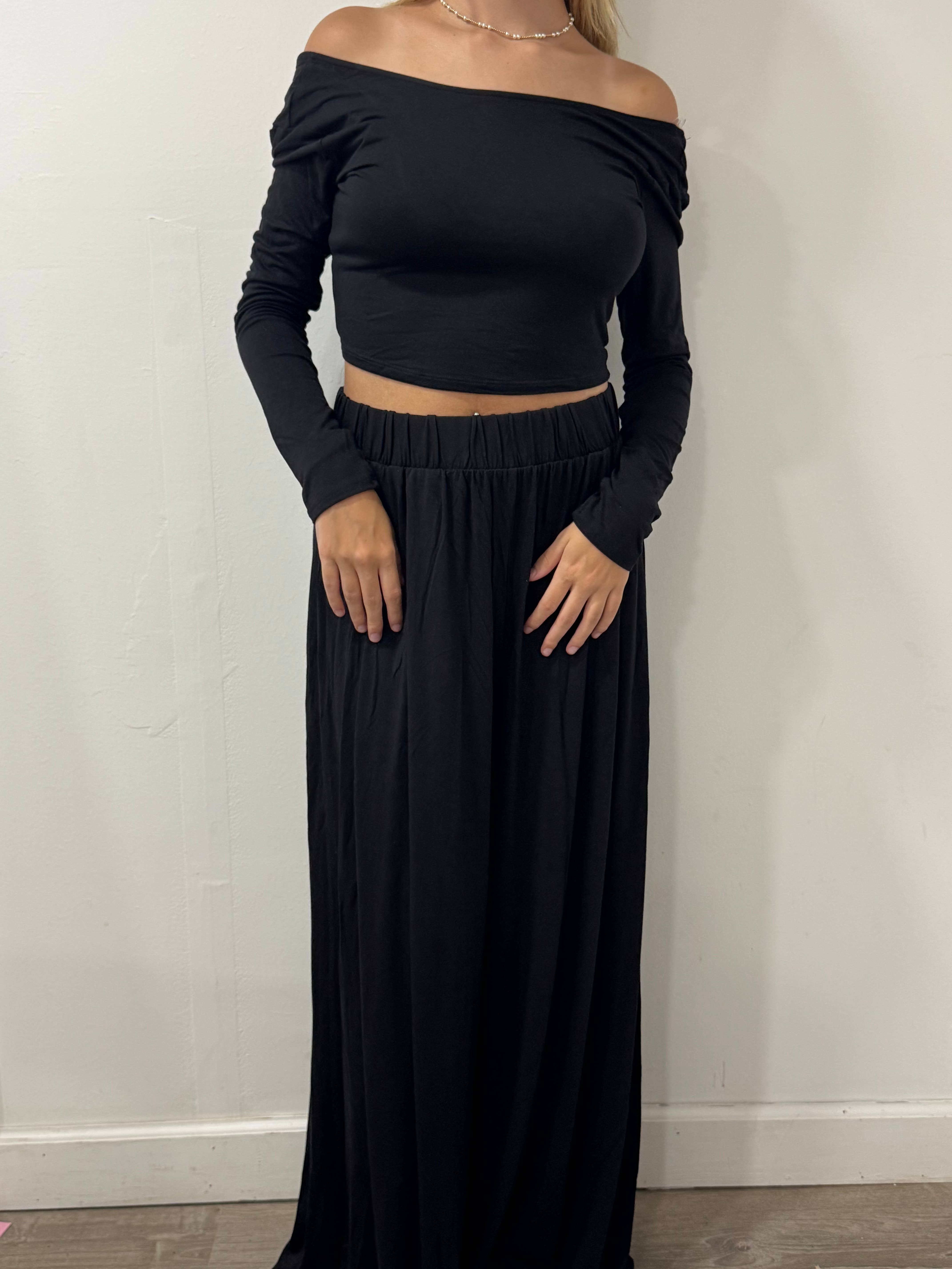Long-Sleeve Crop Top And Maxi Pants Set