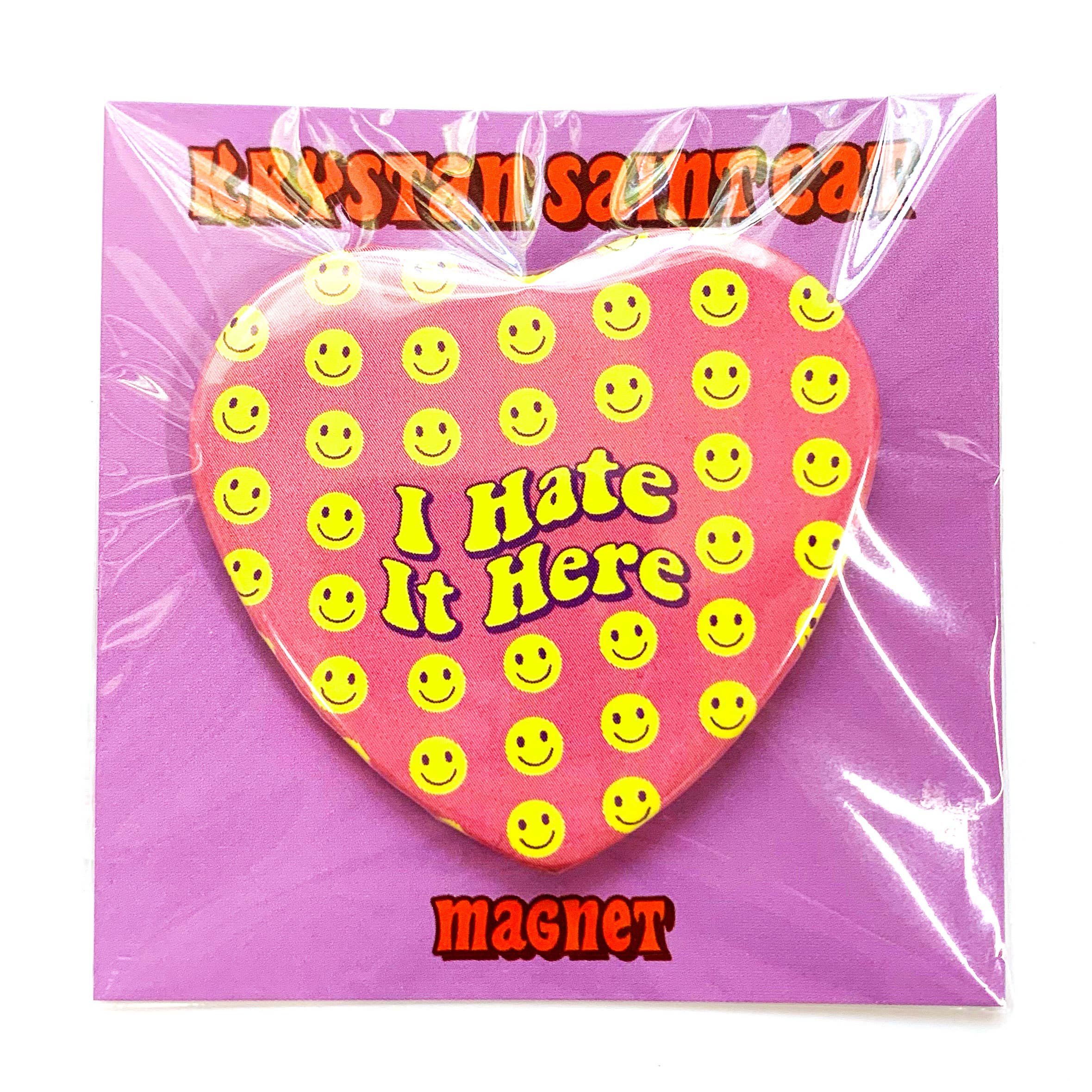 2.25" heart shaped button-style magnet. Individually packed with card in cello sleeve. (back of card has my Instagram and website info, see photo).