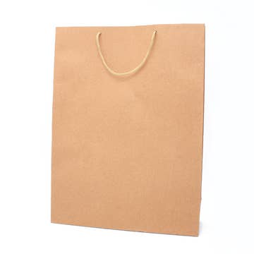 • Size - H42xW32xD10cm • Brown paper gift bag • Natural kraft paper finish • Beige cord handles • 12 units per pack • Paper grade 158gsm • This bag is recyclable. Please remove the handles first.