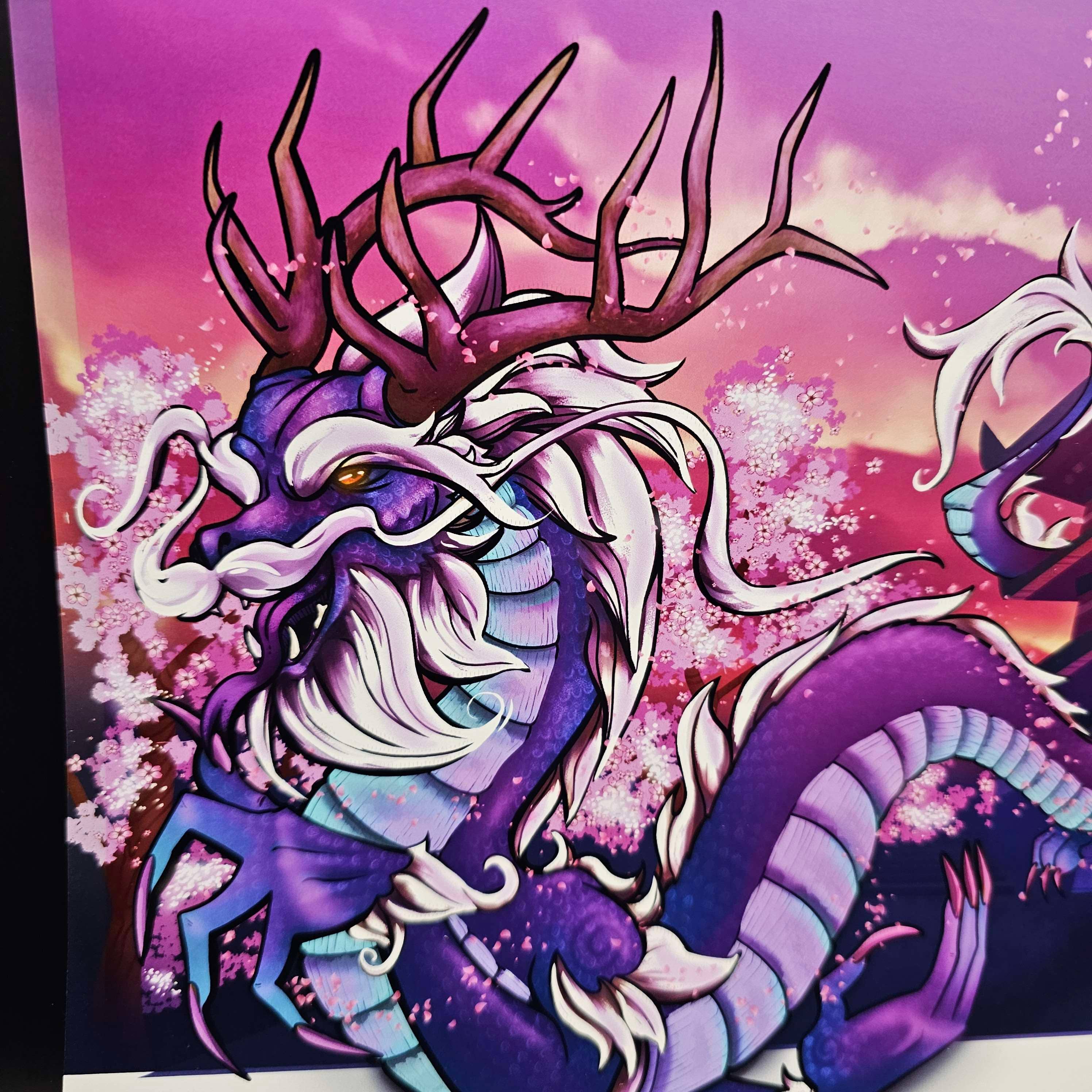 8.5 x 11 photo quality art print, this is an original art piece by Cassie AKA Dead and the piece is called "Ratatoskr & Nidhogg" It depicts Ratatoskr a mythical squirrel like creature whispering to Nidhogg a dragon that resides in the Tree of Life in Norse mythology. He tells slanderous gossip, provoking the eagle who lived at the top of the tree and Nidhogg who lived in the roots of the tree, to attack the Tree as they were unable to reach one another. A reminder that gossip can be dangerous... The art print comes with a thick card stock backing and in a clear plastic sleeve.