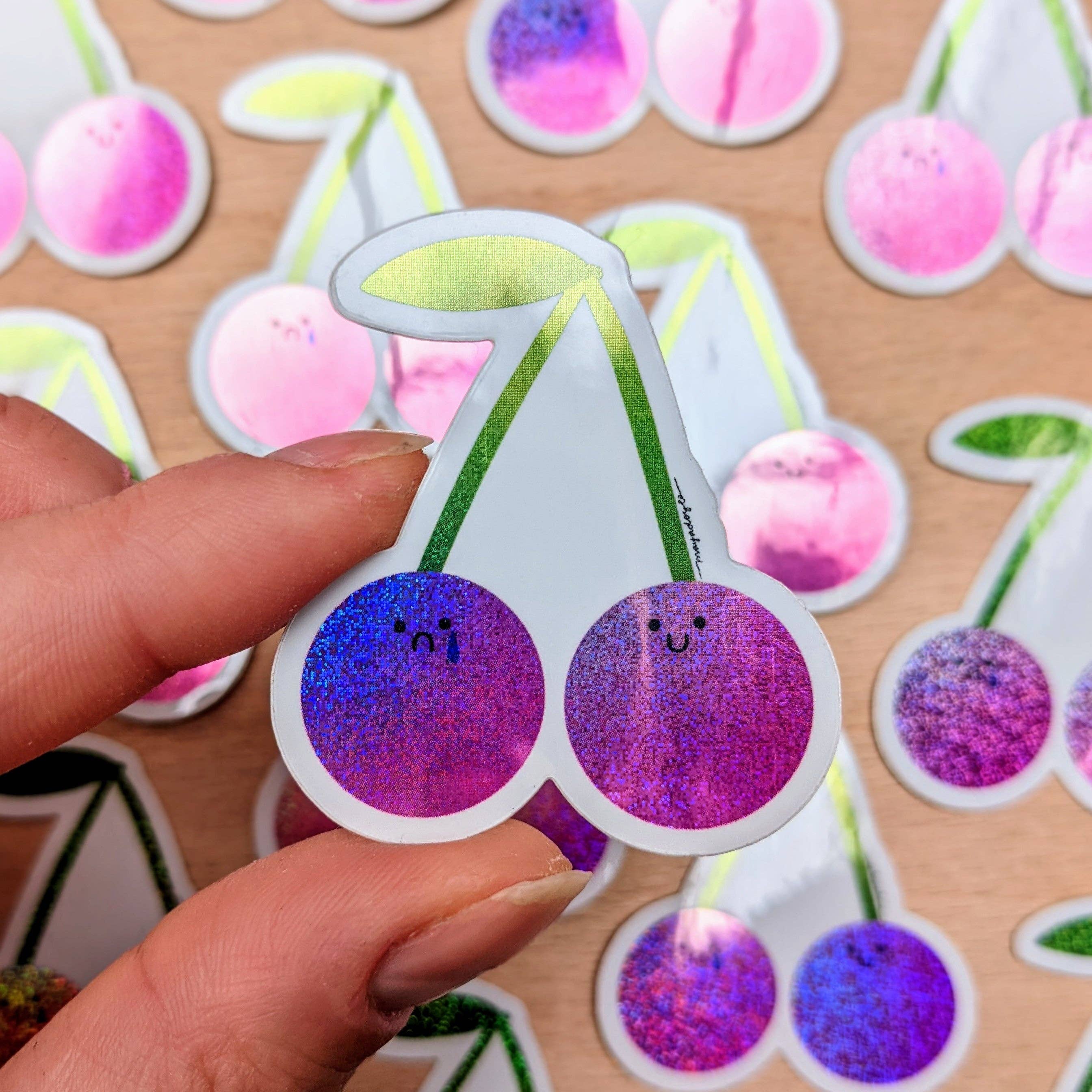 Vinyl stickers designed by Mimo. These stickers will withstand any kind of weather, will hang on through the dishwasher, and are UV protected so they will stay shiny and vibrant for up to 4 years. DO NOT MICROWAVE HOLOGRAPHIC, METALLIC OR GLITTER STICKERS.