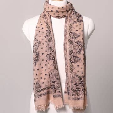 90% Modal+10% Cashmere Scarf 138X138cm, fringed finish. Designed and printed in Italy.