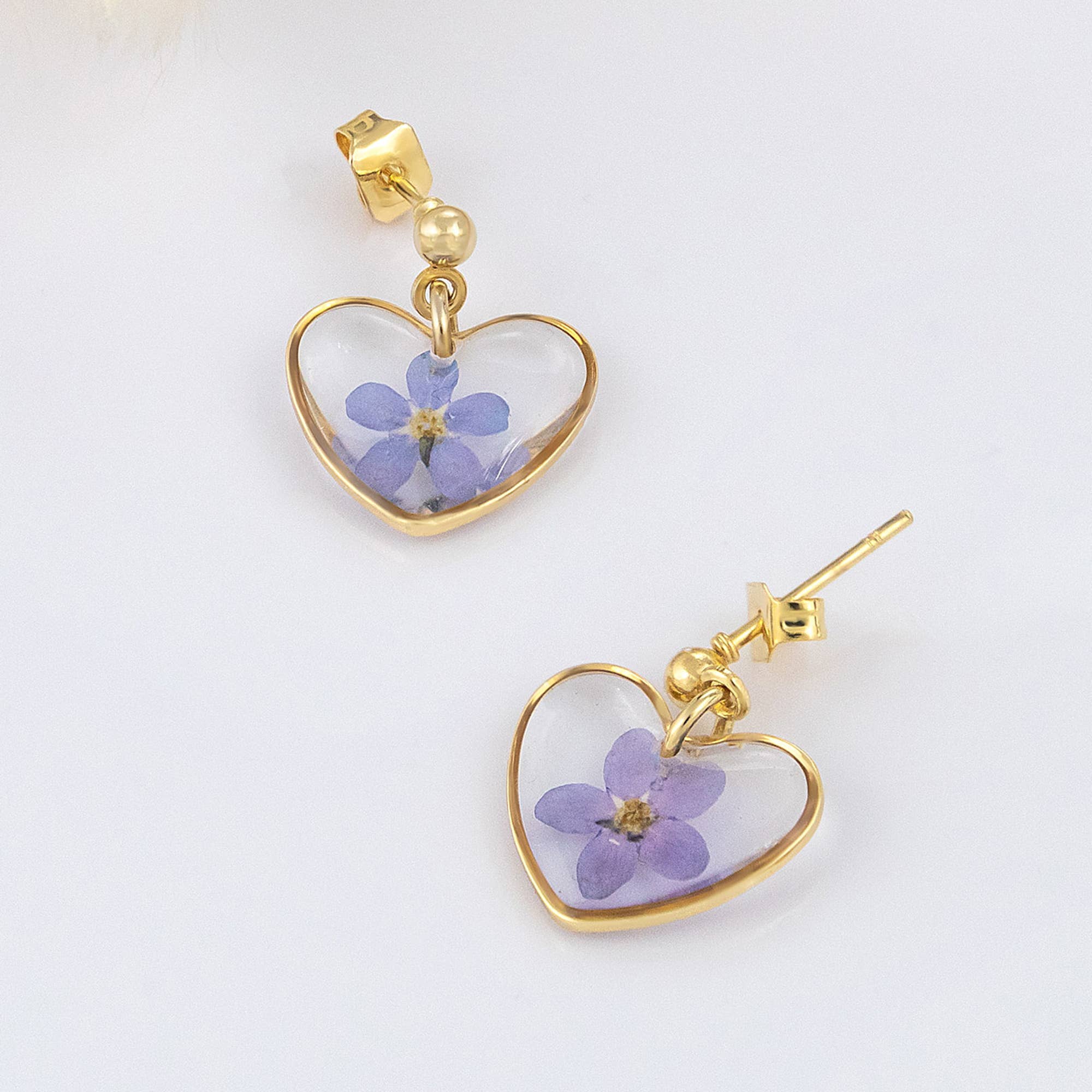 These carefully handcrafted dainty whimsical hexagon dangle earrings feature real dried fern cast in clear non-toxic UV resin. ‼️ DO NOT store or display in direct sunlight as this causes the resin to yellow prematurely ‼️ 𝕄𝕒𝕥𝕖𝕣𝕚𝕒𝕝𝕤: Gold: 24k Gold plated brass earring wires, findings and bezels dried flowers UV resin Silver: Silver-plated brass earring wires, findings and bezels dried flowers UV resin nickel, cadmium and lead free 𝕄𝕖𝕒𝕤𝕦𝕣𝕖𝕞𝕖𝕟𝕥𝕤: Hexagon bezel: 22 x 24 mm Length: approx. 43 mm *all measurements are approximate and may vary slightly* 𝕌𝕟𝕚𝕢𝕦𝕖: Each pair of earrings is ❀ hand crafted ❀ as unique as flowers are ❀ no two pairs look the same (we try to make each earring in a pair look as similar as possible) ❀ natural flowers, may vary slightly in colour size and shape Due to different display settings colours may appear differently on monitors than in real life.🌼