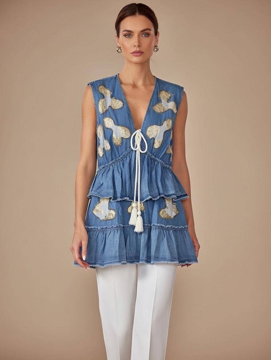 Fashionable Casual V-Neck Denim Vest