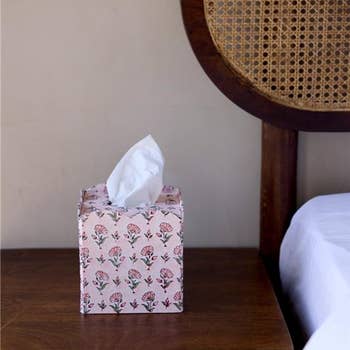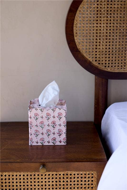 Paper Mache Kleenex Box, Monkey Chinoiserie, Pink checks