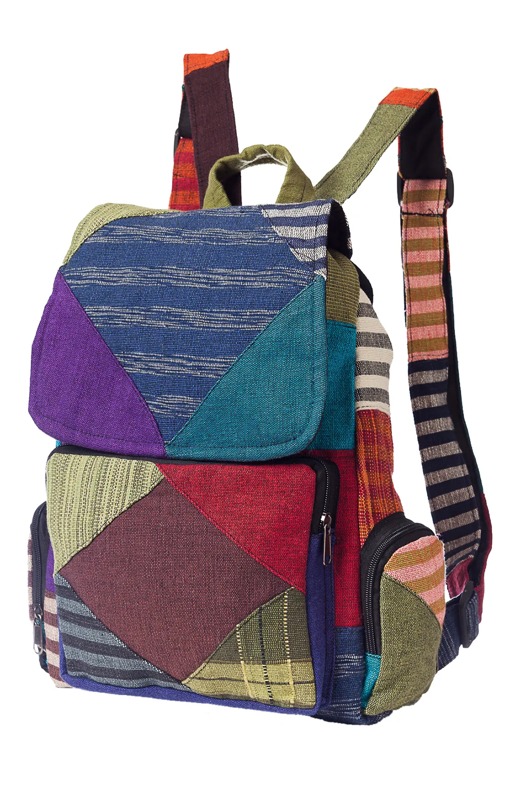 The Balaju Knapsack is a durable and spacious backpack handcrafted in Nepal from 100% breathable cotton. Featuring a secure zipper and velcro closure, along with multiple pockets, this knapsack offers organized storage and practical functionality for everyday use, travel, or festivals. Ethically made to support sustainable fashion and artisan communities. Why You’ll Love It: * 100% Cotton Fabric: Soft, durable, and eco-friendly for long-lasting wear * Secure Zipper & Velcro Closure: Keeps your belongings safe and easily accessible * Multiple Pockets: Provides organized storage for all your essentials * Ethically Handmade: Supports fair trade and traditional Nepali artisans Available Sizes: Approximately 11" width x 17" height Fabric: 100% Cotton Style Tip: Pair with casual or boho outfits for a functional yet stylish look on the go.