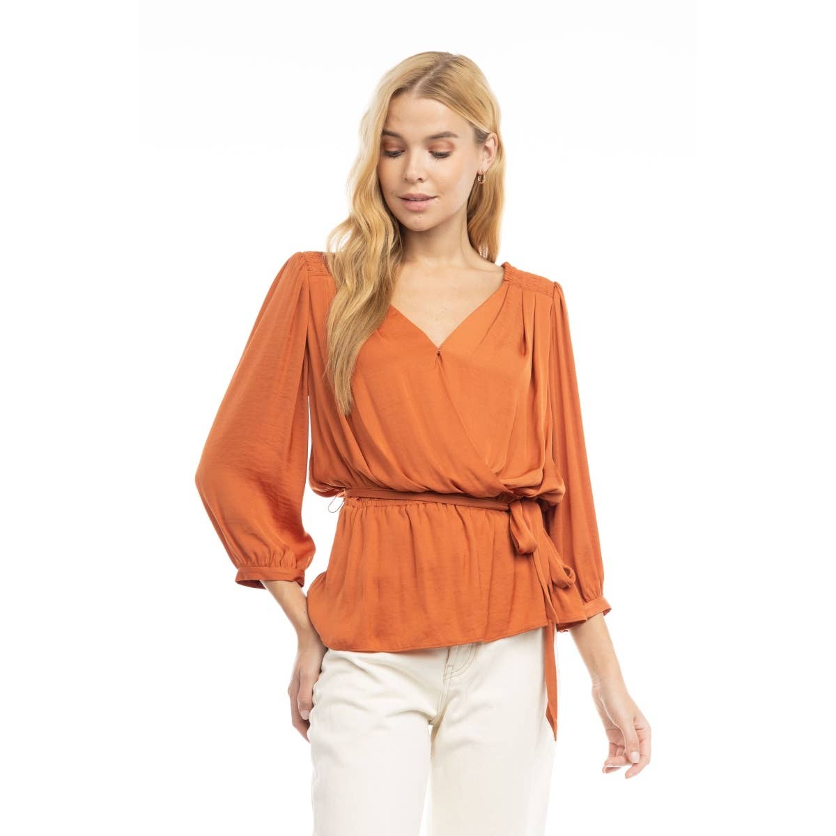 * Style No.: VB112552-5 Boat Neck Blouse With Sleeve Ties Boat Neck Blouse With Sleeve Ties Classic boat neckline paired with adjustable sleeve ties for a touch of charm. A feminine favorite perfect for daytime outings, casual Fridays, or weekend wear. Fabric: Woven 54% POLYESTER 46% RAYON Hand Wash Cold Sizes in Pack:2S-2M-2L