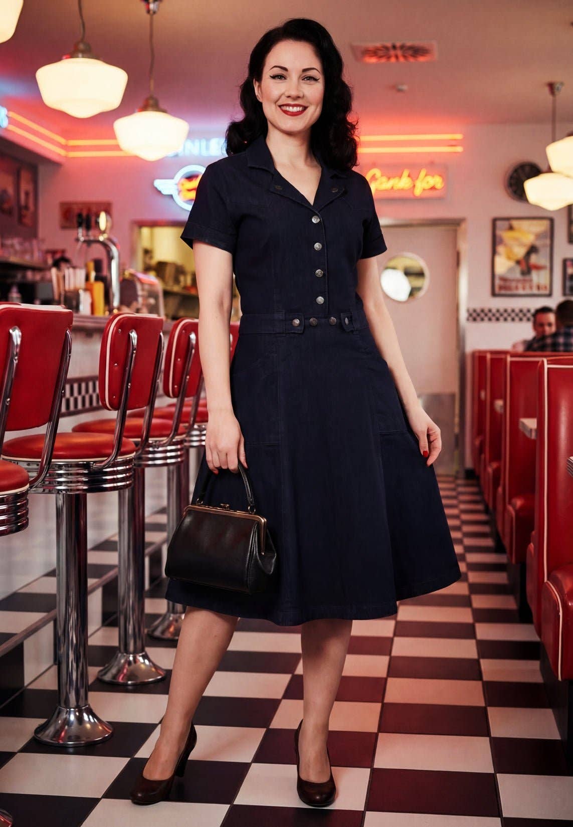 Jeans Dress This denim dress by Queen Kerosin combines authentic Western charm with feminine flair! The sturdy denim fabric with elastane content ensures comfortable freedom of movement, while the A-line silhouette and flared swing skirt make the dress come alive with every step. With artistic embroidery on the shoulders and collar, the Western look gets an elegant touch. The decorative, removable belt accentuates the waist, while contrasting decorative stitching and sturdy metal buttons perfectly complete the design. Paired with cowgirl boots, this dress becomes the ultimate vintage highlight! ♕ Long-sleeve Western dress by Queen Kerosin ♕ Sturdy denim with elastane content ♕ Stylish embroidery on shoulders and collar ♕ A-line cut and flared swing skirt ♕ Contrasting decorative stitching and sturdy metal buttons Material: 98% cotton, 2% elastane Fit: Slim fit Care instructions: Machine wash at 30°C Model size: Size advice: