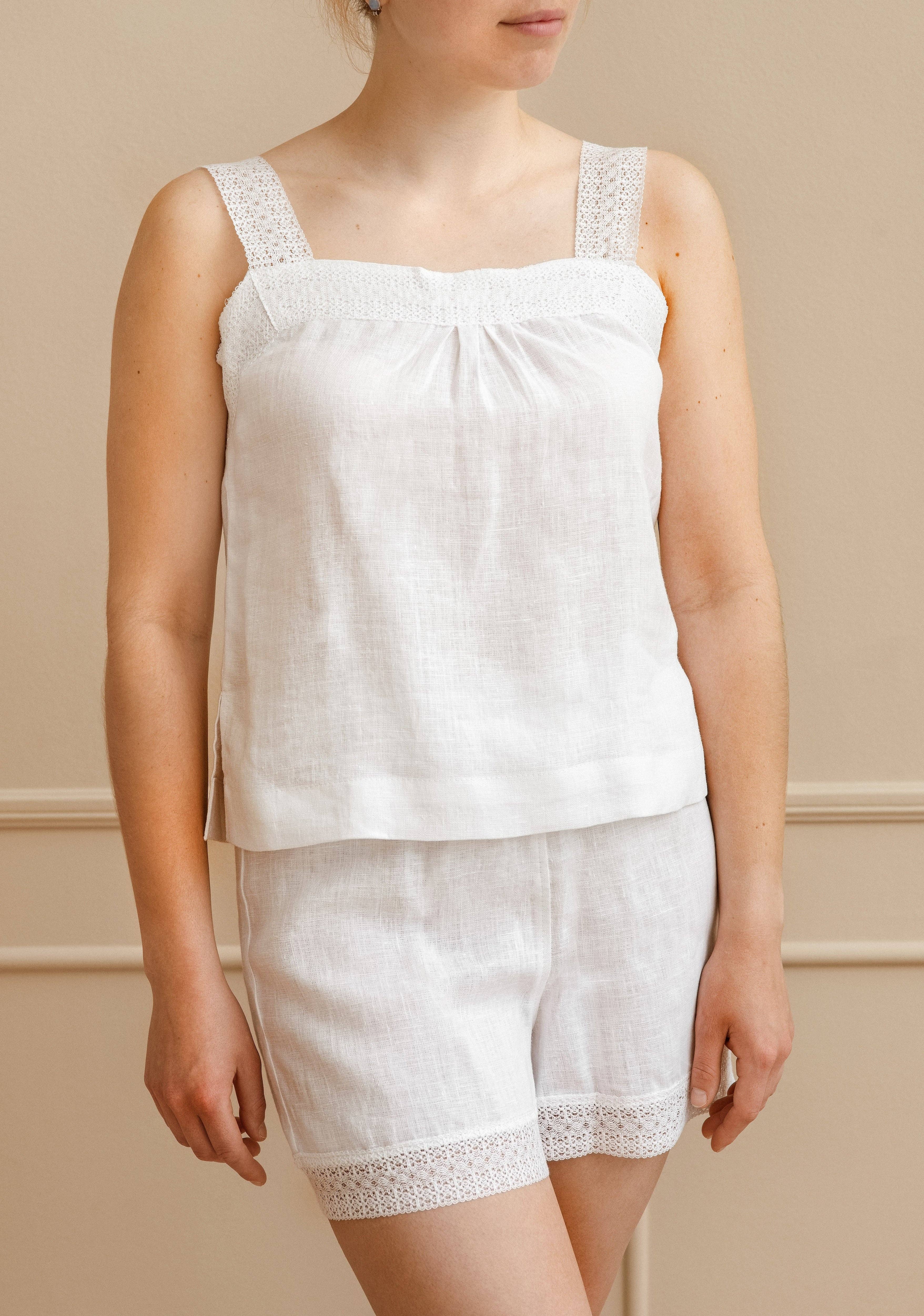 This set includes a breezy camisole top with adjustable shoulder straps and relaxed-fit shorts that fall just above the knee. Made from high-quality linen fabric, this ensemble is perfect for those warm summer nights or cozy evenings at home. Whether you're unwinding after a long day or enjoying a leisurely weekend, our linen shorts and top set offers both style and comfort. Embrace the natural elegance of linen with this versatile and chic loungewear set, designed exclusively for women who appreciate quality and fashion. Shop now and indulge in the ultimate relaxation experience. ~ Includes 1 shorts and 1 top.; ~ OEKO-TEX Standard 100 certified fabric.