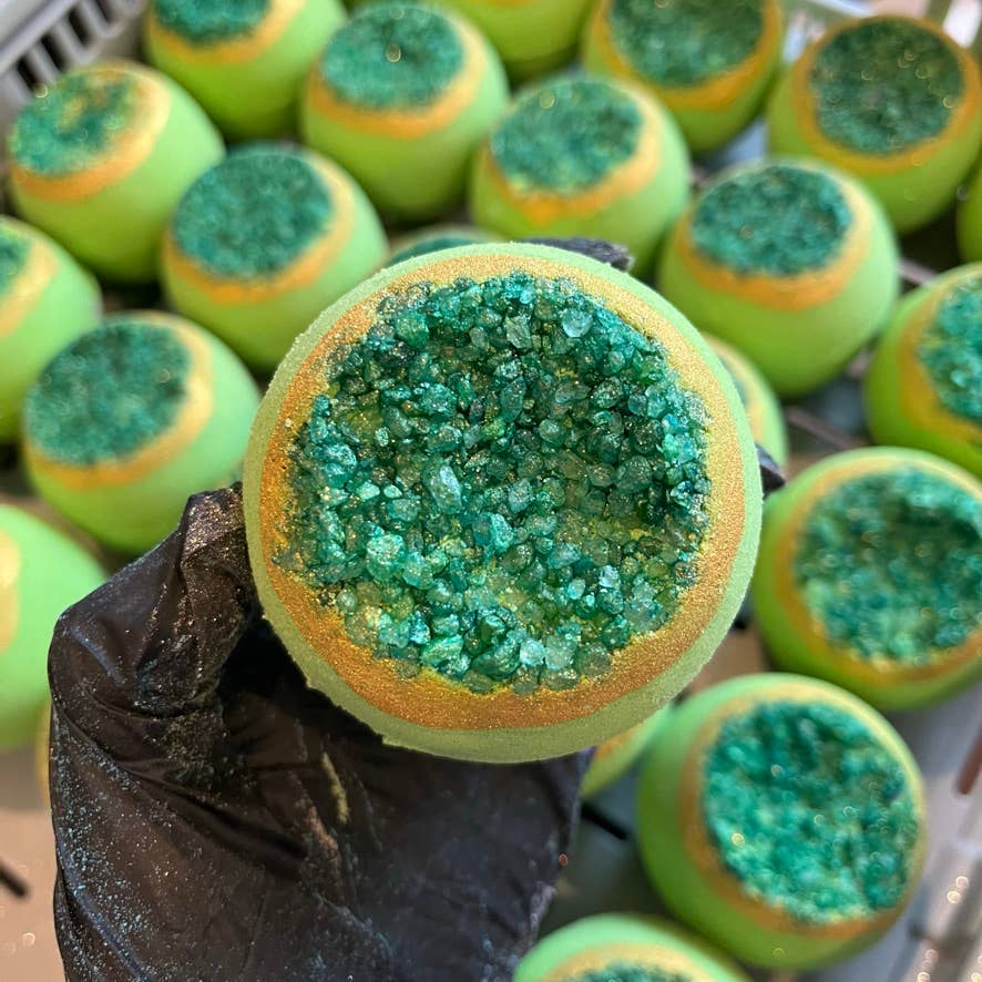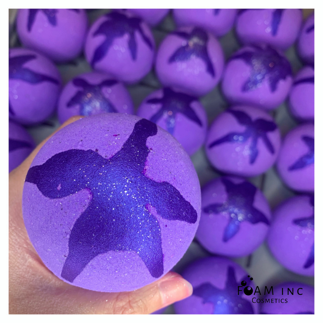 Bagged in clear, compostable bags. Ingredients label will be provided with our branding ONLY. *PLEASE ASK TO USE OUR PHOTOS, WE WILL EMAIL PHOTOS WITH OUR WATERMARK ON THEM. A COST WILL BE INCURRED IF NEEDED WITHOUT WATERMARK* A sweet, floral bath bomb that packs a bright pink punch, watch it fizz out into the water and turn it into a sea of gorgeous fuchsia, topped off with a beautiful, delicate dried rose bud! All of our bath bombs are made using skin loving ingredients, packed with grapeseed oil which works wonders at hydrating the skin, for that light moisture. We add clay in all of our bath bombs to draw out any dirt and impurities - we actually make bath bombs that care for your skin as well as adding some bath time fun!