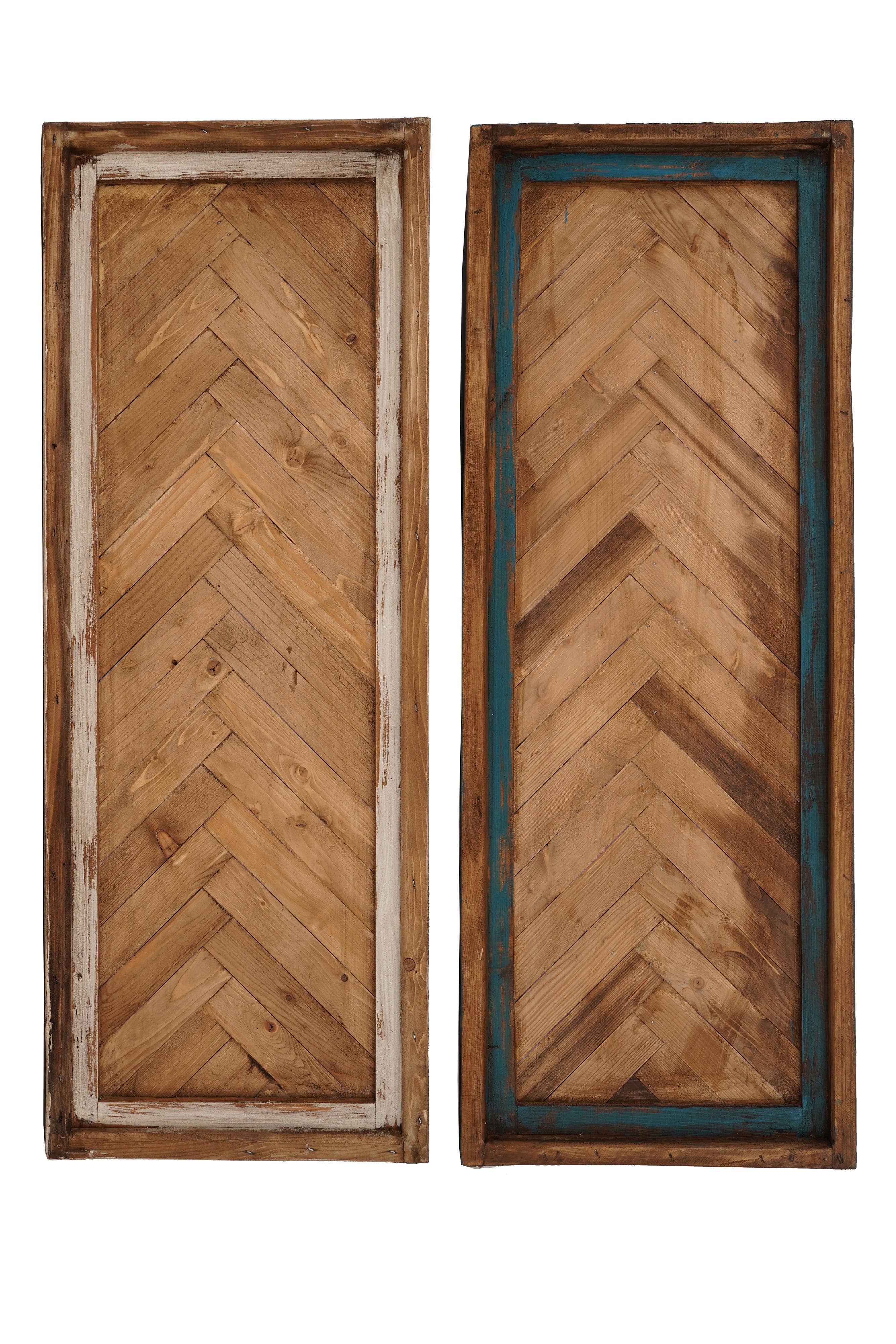 Our prettiest and "chevron" style farmhouse Architectural window is called the Timberlane Farmhouse Architectural single window. And it mixes solid wood, great design. It measures about 18x32x2 inches approximately. We will have two sizes and two colors on this beautiful design. Each size is listed separately. We have so many different designs available. Please understand that each one is handmade and will be each one of a kind. Keep in mind that these are rustic and not machine-made. So don't expect a perfect machine-made cookie-cutter item. Please buy accordingly. Please study photos and video and buy accordingly. These are rustic. Size may vary +-1 inch or so since each is handmade. Color tones may vary as each is hand-painted.