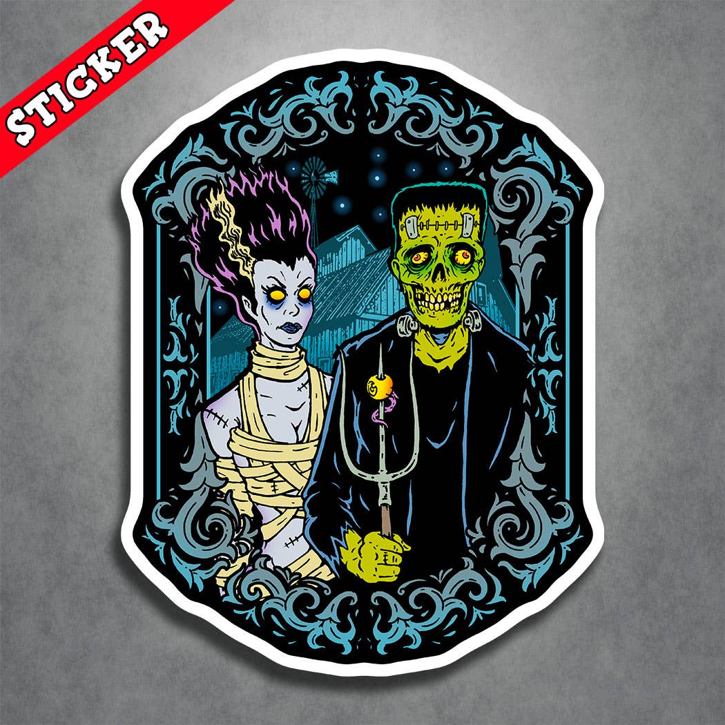 All stickers are original hand-drawn and inked lowbrow art. We then custom printed on thick 4.3 mil semi-gloss vinyl with an outdoor rated life of 3-5 years and then laminated to your choice of gloss or matte finish. Stickers are made to order and processed in-house here at our Las Vegas small business office. About this product: - Waterproof, fade-resistant, & scratch-resistant - 4.3 mil air release vinyl - gloss or matte finish - eco friendly inks - Available in 11 approximate sticker sizes from 2" - 12" - Sizes are based on longest side of sticker. Monsters & Martians - We stand alone in the specialization of the ultimate in Wicked 'n Twisted Rockabilly, Psychobilly, Sexy Pinups, & Horror Punk Monster Alien artistry that will blow your mind! For all fans of Halloween, classic monster movie horror, zombies, voodoo, demons, devils, lowbrow art, kustom kulture, occult, horror punk, goth, gothic, skulls, hot rods, gasser, rat rods, fink monsters, B-Movies, sci-fi, aliens, and UFOs.