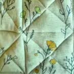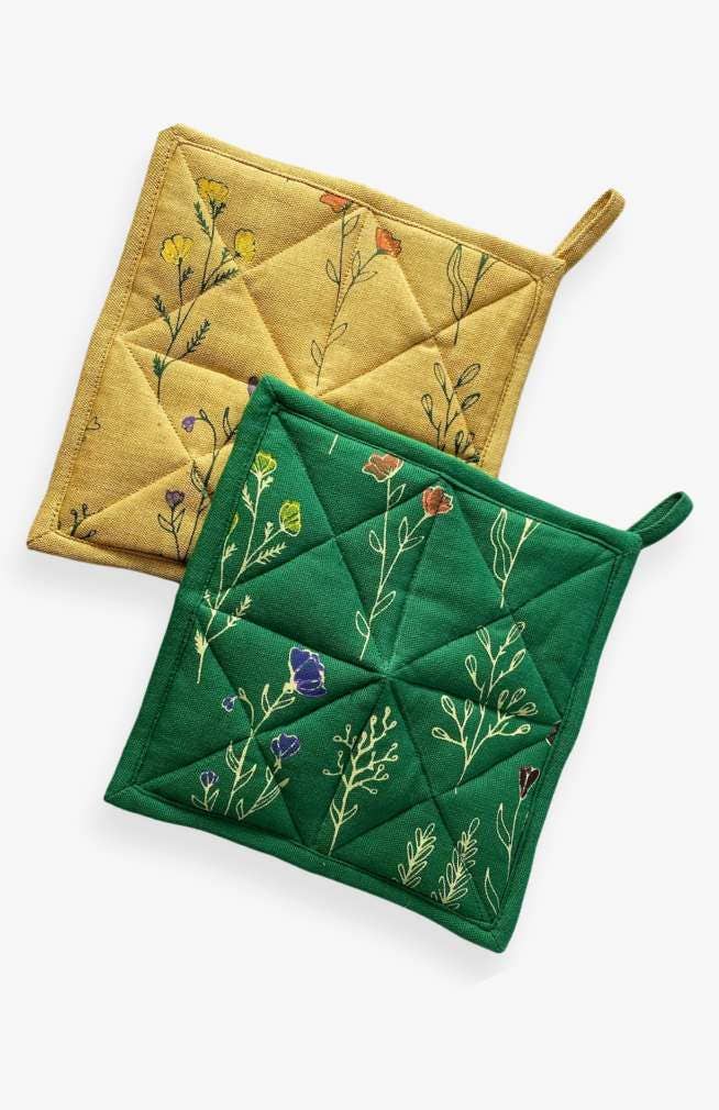 Very pretty and bright. Patterns are charming. Oven mitts seem mainly decorative simply because they are on the thin side. Changing pricing scheme because of that but they are still beautiful in the space. Silk trivets exceeded expectation and are just stunning!