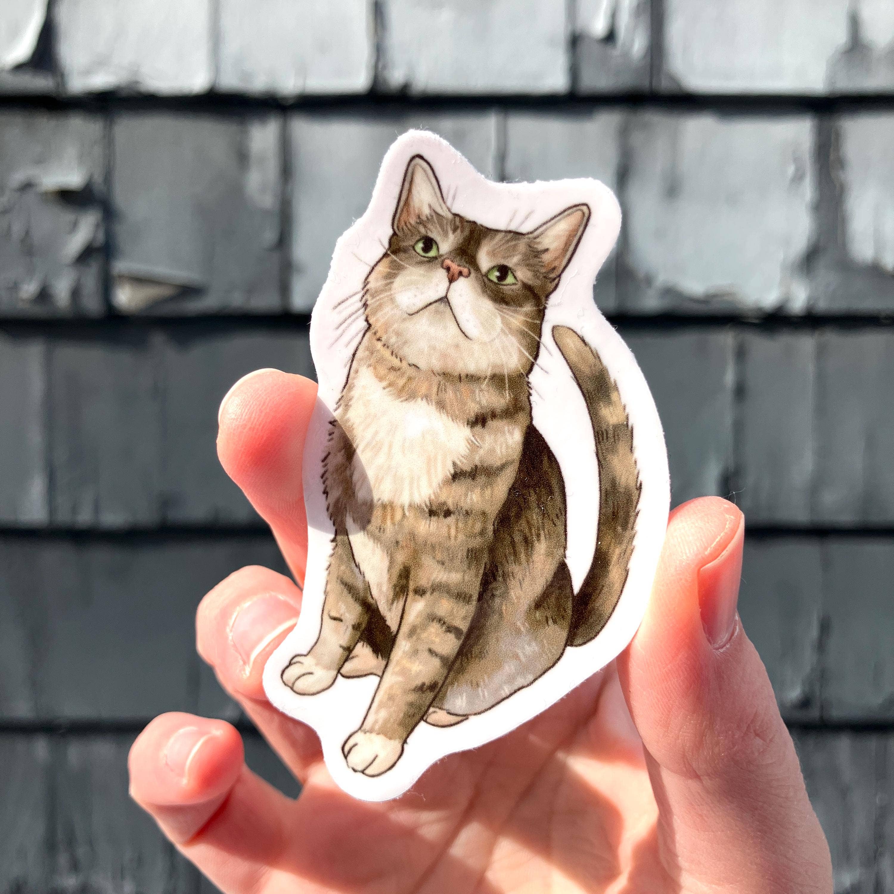 Designed and illustrated by Ashley Fimbel. Measures 2.4 x 3.7 inches. Made out of a matte, durable, water-resistant vinyl material.