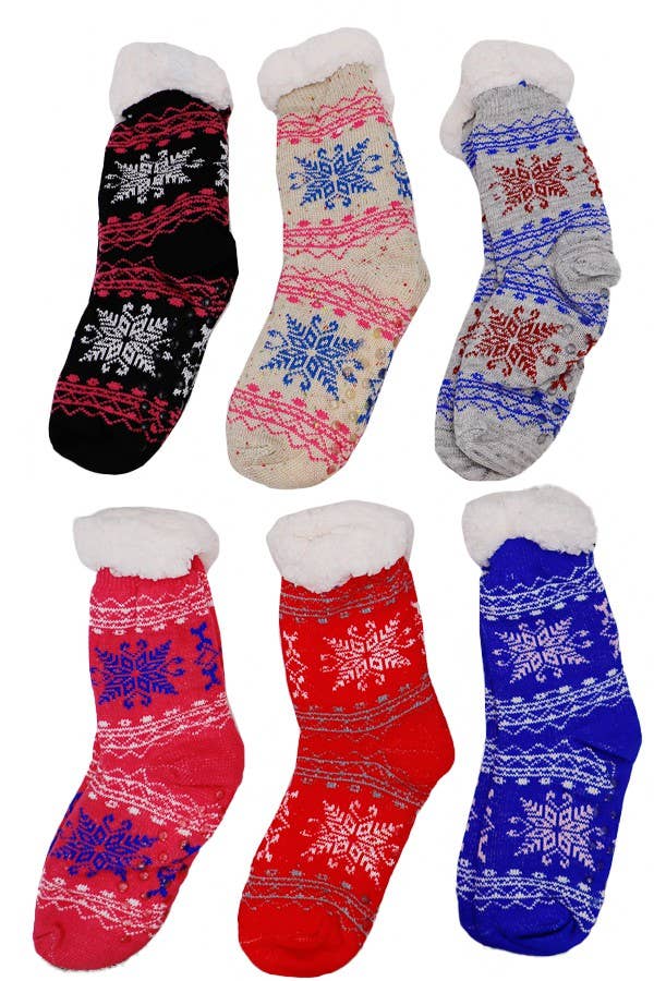 Various Animal Paw Print Fuzzy Fleece Indoor Mid-Crew Socks Assorted Color (12 - 2 Units Per Color, May Vary)