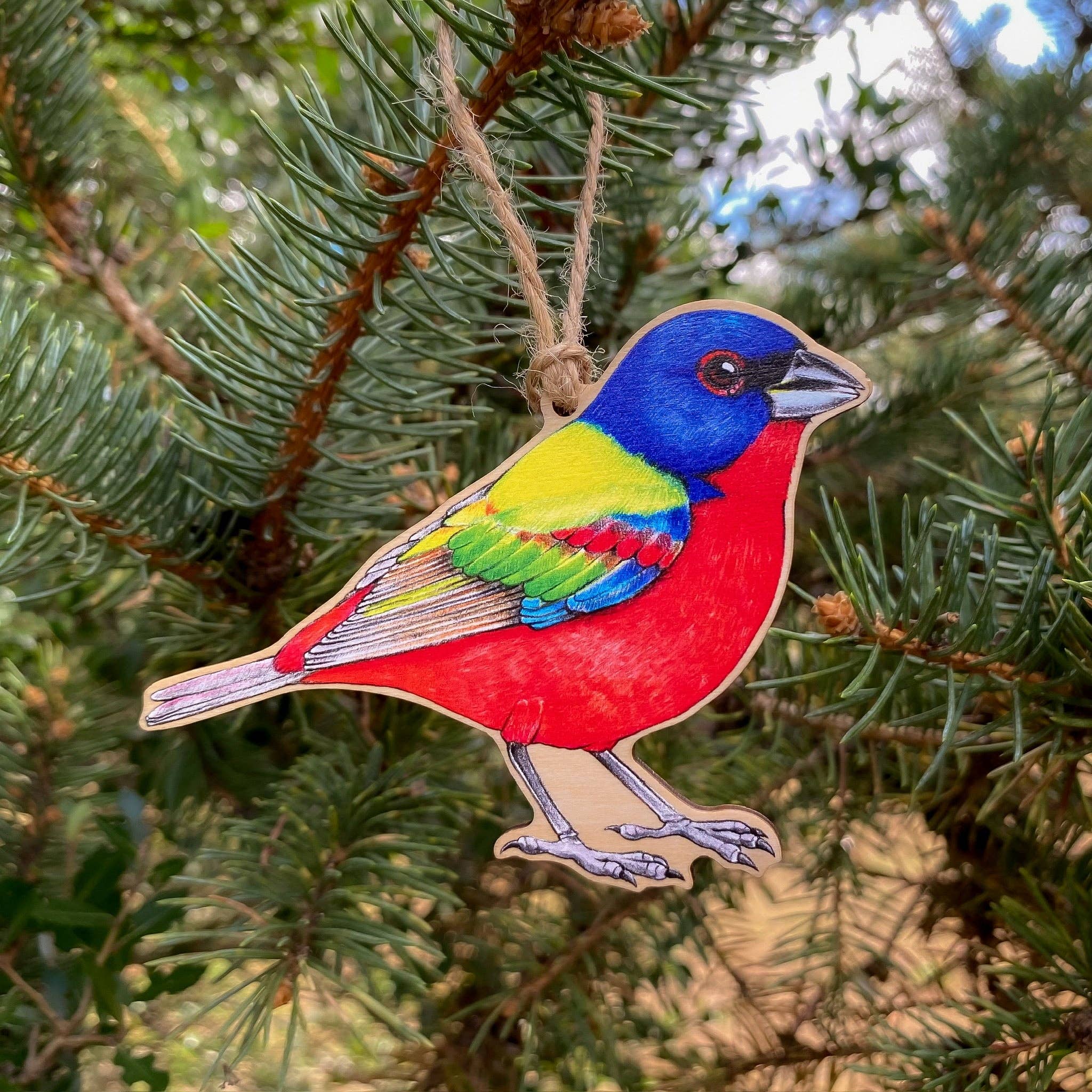 A wood print ornament featuring my illustration of a turkey vulture. This ornament measures approximately 3.5 inches. It is printed with my illustration, die cut onto 1/8 inch basswood plywood, and strung with twine. This ornament is perfect for those who love raptors, scavengers, buzzards, and majestic birds!