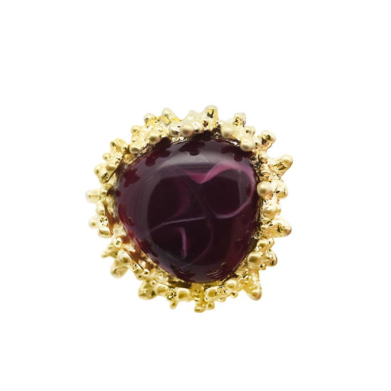 PRODUCT CODE: NY2484B881 MATERIAL: Zinc Alloy Metal, Resin SIZE: Elastic SURFACE DIMENSION: 4.1x3.2 cm PRODUCT DESCRIPTION • Exceptional color rhodium plating. • Luxurious and retro style, with a large colored oval resin stone, surrounded by a gold coral-shaped ornament. The overall design is bold and conveys a sense of sophistication and richness of texture. DESIGNED TO BE COMFORTABLE AND EASY TO WEAR Our products are made in compliance with the limitations on nickel, lead, and cadmium, in full accordance with current regulations.