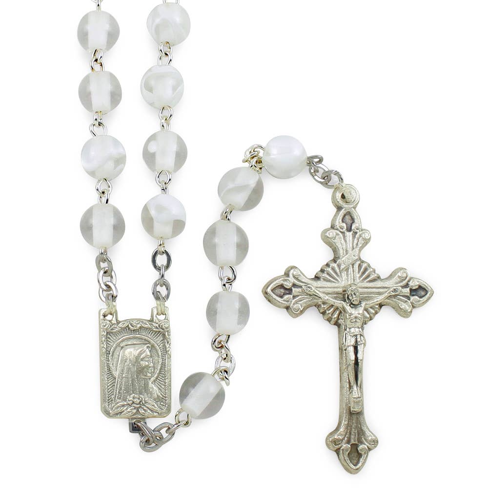 This beautiful Rosary is made of a genuine Amber tone Murano glass beads, each bead is capped with silver finish caps on both sides. The rosary includes an oxidized Miracle medal center and Crucifix with an oxidized finish completes the rosary. The rosary is handmade in Italy. Total length 21.25"