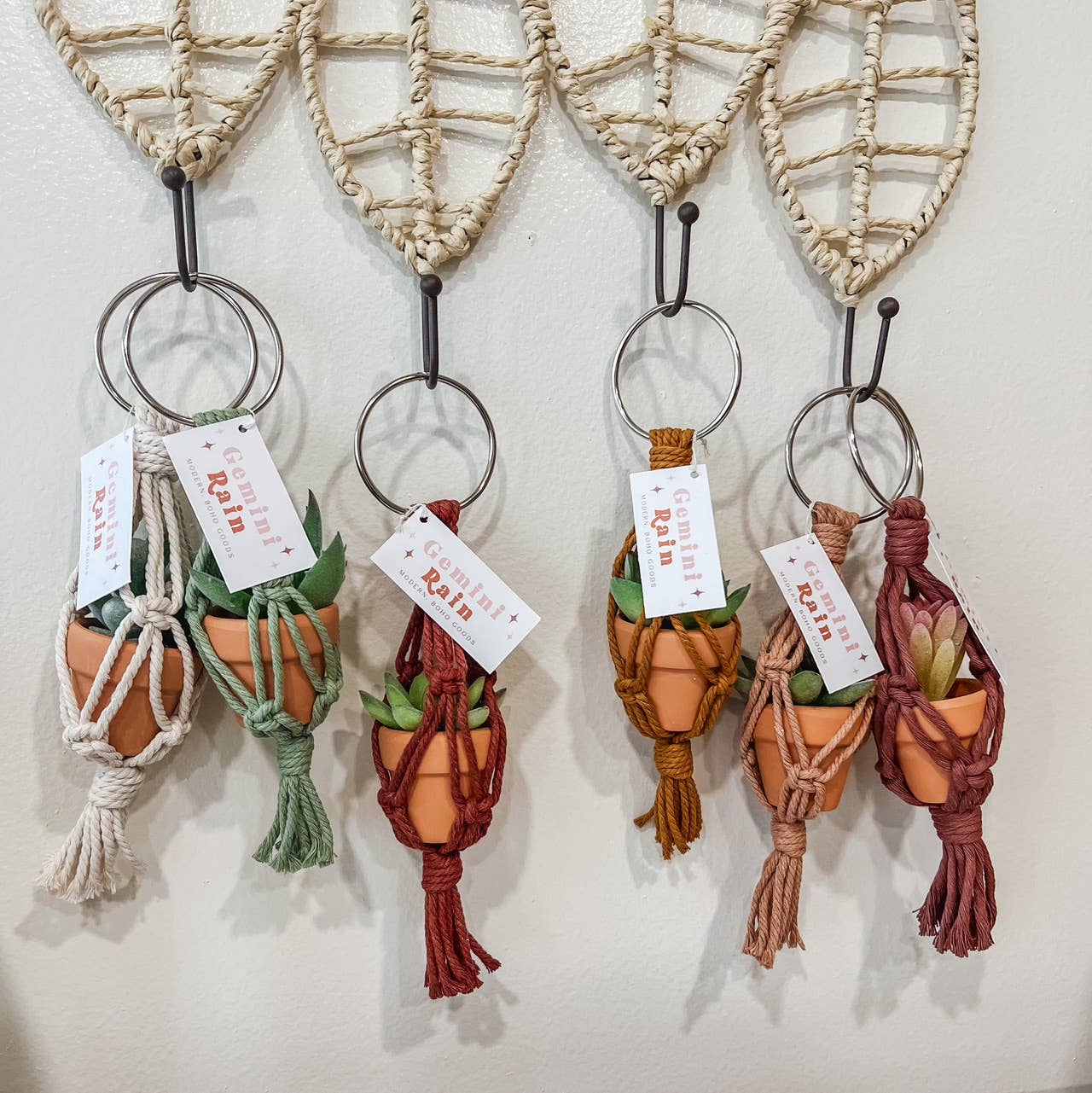 The mini macrame plant hangers with faux succulent arrived and they were perfect! Nicely and carefully packaged, each in bubble wrap and with a tag attached to the ring. Very pleased! Thank you so much!