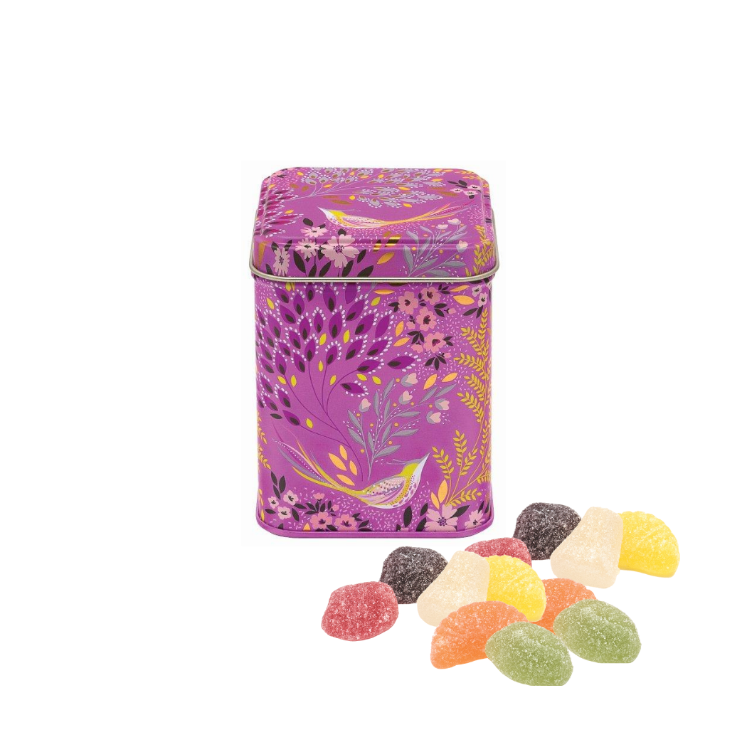 These charming embossed window tins with fruit jellies feature four charming designs by artist Dana Kubick. Ideal for gifting to someone special. Tin measurement: 65 x 55 x 35mm. Fill weight: 120gm