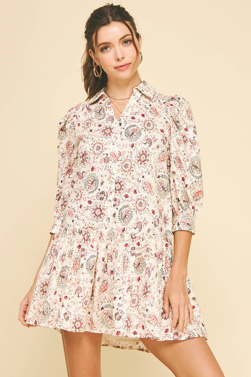 FLORAL PRINTED BUTTON DOWN MINI DRESS - 6051D