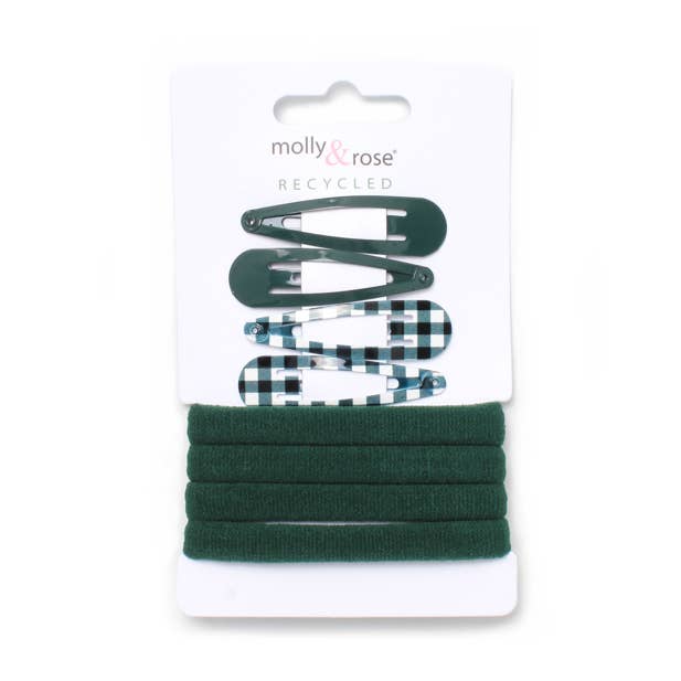 • Sleepies and jersey elastics set • In Red • Elastic fabric - 71% recycled polyamide, 29% elastane • Sleepie - 100% iron • Sleepie size - 5cm • Elastic thickness - 1cm • Elastic diameter - 4.5cm • 1 unit is 4 sleepies and 4 elastics on a display card - 2 plain sleepies, 2 gingham print sleepies • 6 units per pack