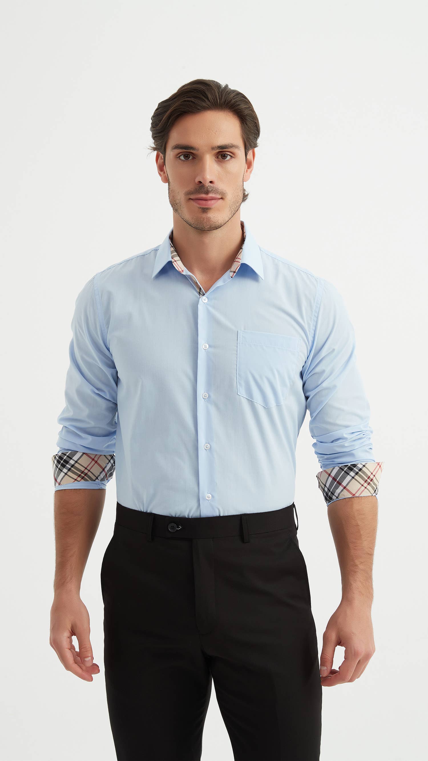 YVES ENZO PARIS shirt: Fitted cut, spread collar. EASY CARE-NON IRON (no need to iron the shirt).