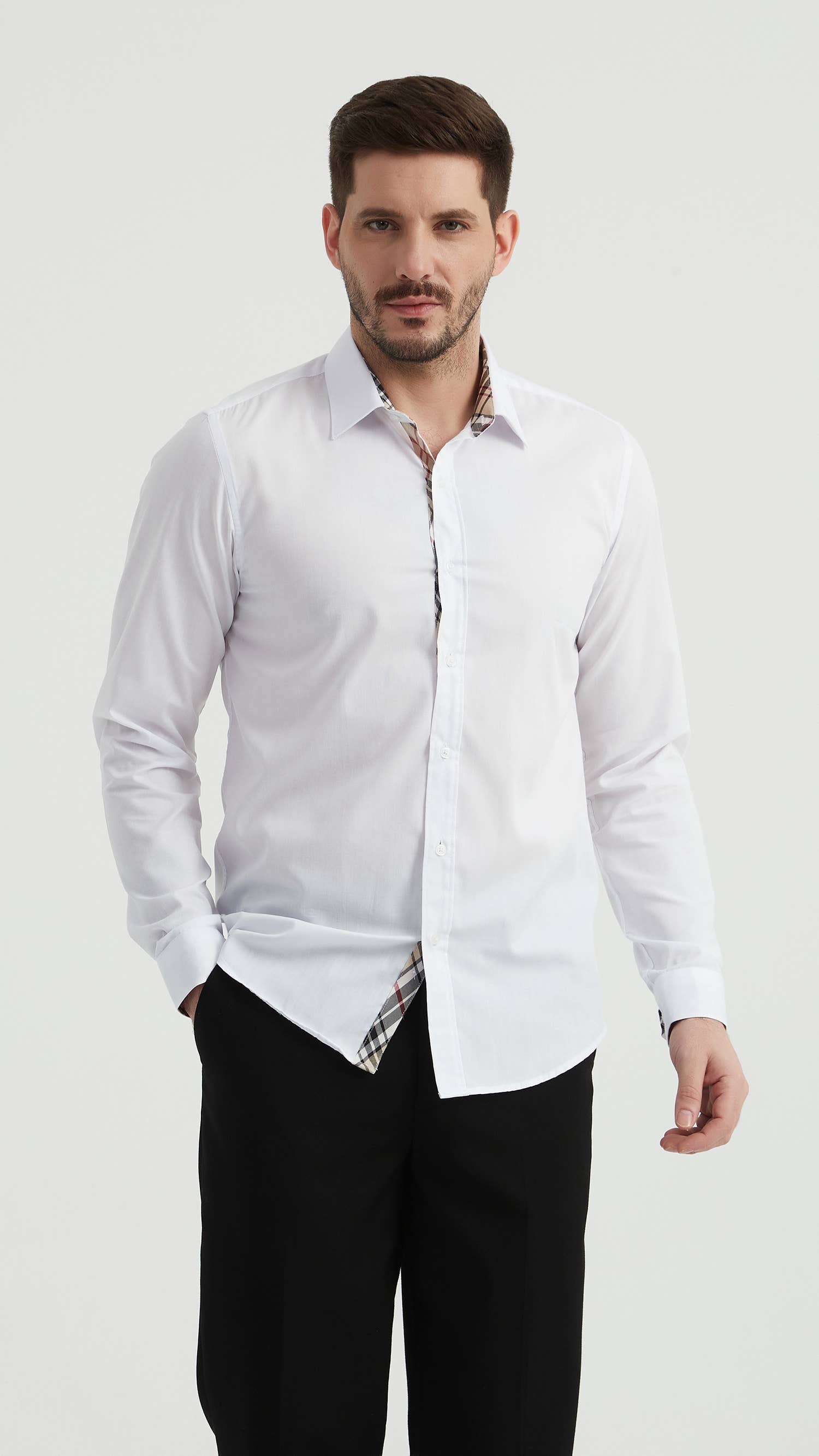 SKU: SLIM1009-9, SLIM1009-9, SLIM1009-9, SLIM1009-9, SLIM1009-9 Made in China Care instructions: Machine wash Colour: White Fabric: 65% cotton 35% polyester Pattern: Solid Season: Core Sleeve length: Long-sleeve Product language: English and French Weight: 300 g (10.58 oz)