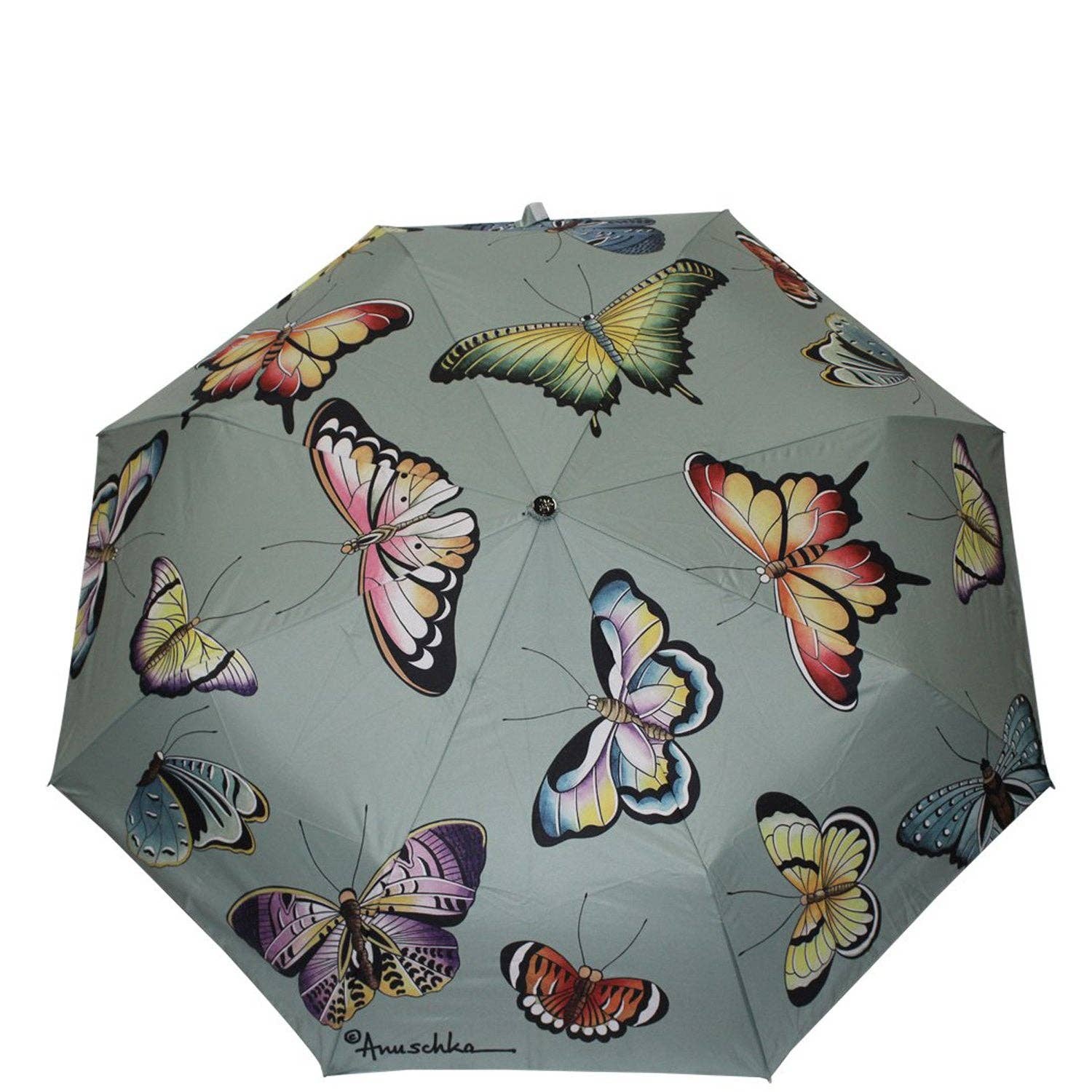 DETAILS Beautiful, yet practical this umbrella has it all. It is compact enough to fit in your handbag but offers a full-size canopy. Other features include a custom-molded wooden handle, wrist strap and convenient storage sleeve. Compact enough to fit in most bags. 38” Canopy provides shelter from wind and rain. Unique lining delivers guaranteed UV protection (UPF 50+) during rain or shine. Easy open-close at the touch of a button. Comfort grip wooden handle. Fiberglass ribs for stronger wind-resistance. Polyester fabric prints to match our beautiful handbags and brighten up the gloomiest days. Six months limited warranty. DIMENSIONS Diameter: 38”/96.52cm Weight: 0.84Lbs./0.38Kgs/13.4Oz