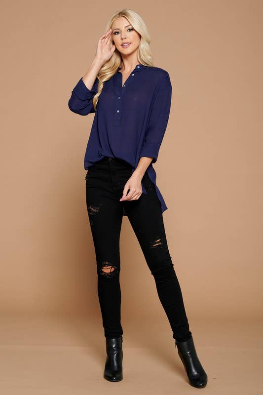 Double V-neck Top With Side Placket - 40573T