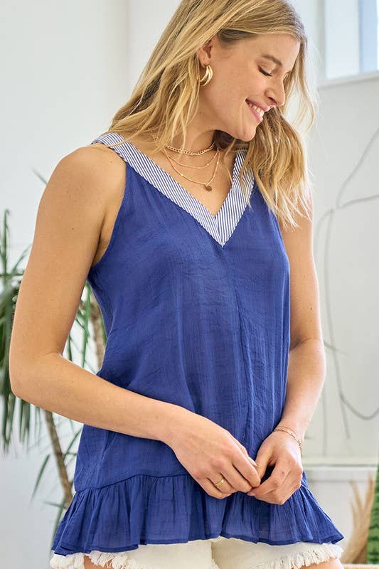 Double v-neck top with a side placket self: 80% rayon, 20% linen total length 25.5/27" | Bust 18 1/2" | shoulder 11 1/2" model is 5'9" | bust 32b" | waist 24" | hips 34" wearing size small