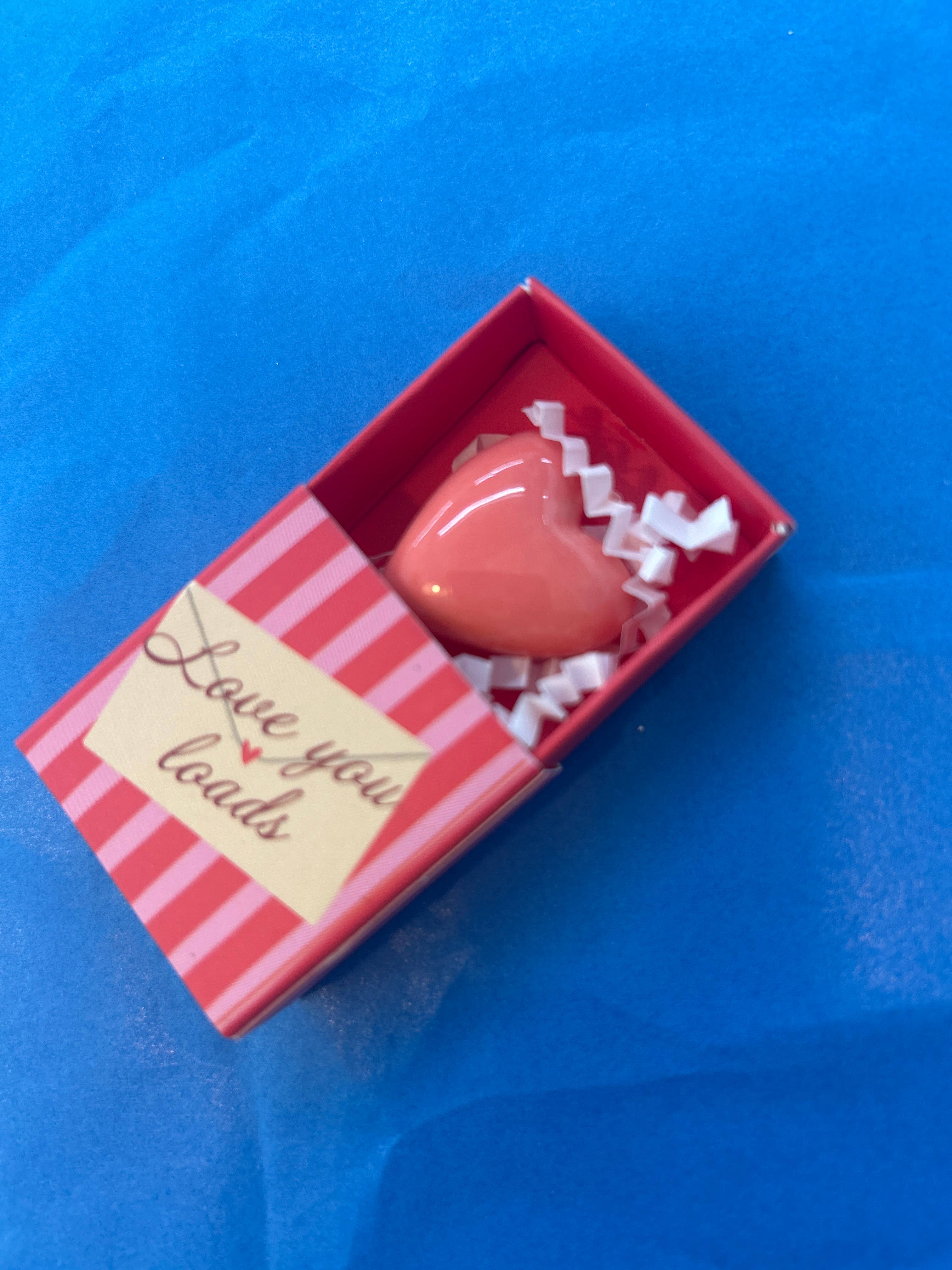 Whether you're looking for a silly little gift or a special something to remind someone of how great they are, our ceramic tokens are the perfect choice. These tiny colourful matchboxes feature an even tinier ceramic token inside, glazed and glossy and ready to sit on a shelf or in someone's pocket. The top of the box reads something different for each design Made from ceramic, card